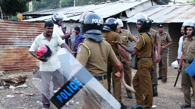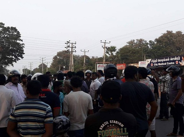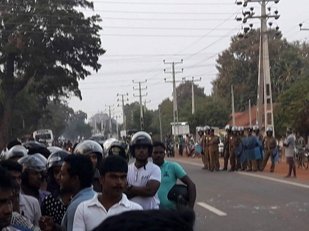 அங்கு வந்த கலகம் அடக்கும் பொலிசார் உட்பட படையினர் மக்களை அங்கி ருந்து வெளியேறுமாறு பணித்த நிலையில் இரு தரப்பினருக்கும் இடையில் முறுகல் ஏற்பட்டது.