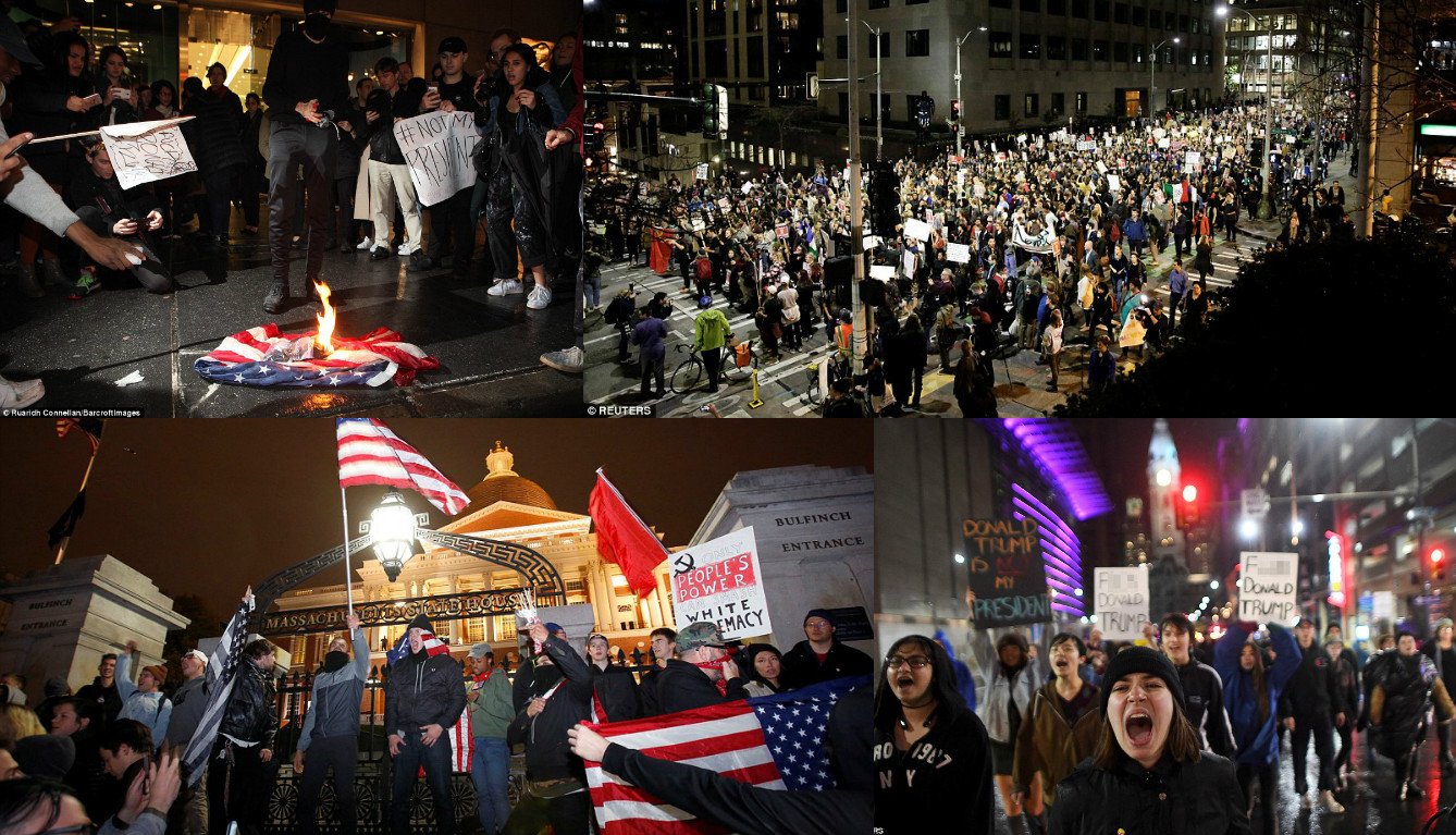கலிபோர்னியா பல்கலைக் கழக மாணவர்கள் ஆயிரத்து 500க்கும் மேற்பட்டோர் ட்ரம்புக்கு எதிரான கோஷங்களை எழுப்பியவாறு ஆர்ப்பாட்டத்தில் ஈடுபட்டனர்.ட்ரம்ப்பின் இஸ்லாமியர்கள் மற்றும் வெளிநாடுகளில் இருந்து வந்த அகதிகள் மீதான கருத்தே அவருக்கு எதிரான போராட்டங்களுக்கு காரணம் என கூறப்படுகிறது.மேலும் பல்வேறுt பாலியல் குற்றச்சாட்டுகளுக்கு உள்ளான ஒருவரை, பெண்கள் குறித்து கடுமையாக விமர்சித்தவரை அதிபராக ஏற்க முடியாது என போராட்டத்தில் ஈடுபட்டுள்ள பெண்கள் தெரவித்தனர்.பல இடங்களில் போராட்டம் நடத்தியவர்களை தண்ணீரை பீய்ச்சியடித்து காவல்துறையினர் விரட்டினர்.பதவியேற்பதற்குள்ளேயே ட்ரம்ப்க்கு எதிராக வெடித்துள்ள போராட்டம் நெருக்கடியை ஏற்படுத்தியுள்ளது.