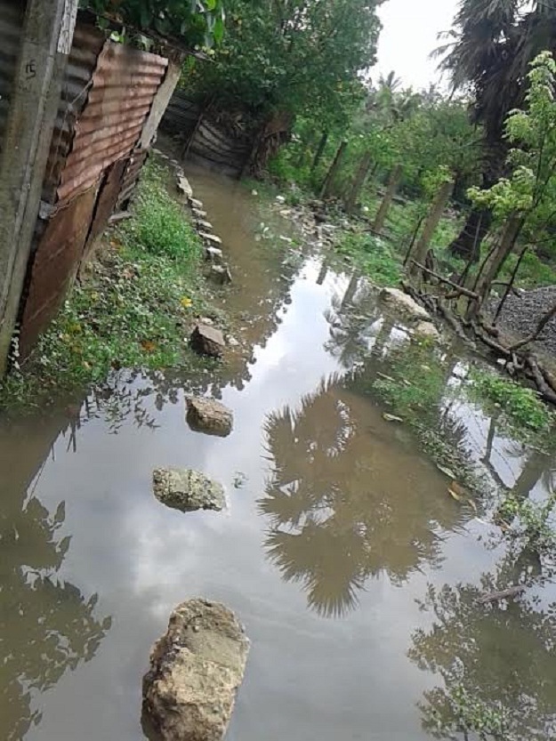 மழை வெள்ளம் இப்பகுதியில் உள்ள வீடுகளுக்குள் புகுந்துள்ளதால் பலர் இடம்பெயர்ந்துள்ளதுடன், மேலும் பலர் தங்க இடம் அற்ற நிலையில் மழை வெள்ளத்துக்கு மத்தியில் பெரும் இன்னல்களை எதிர்கொண்டு வருகின்றனர்.