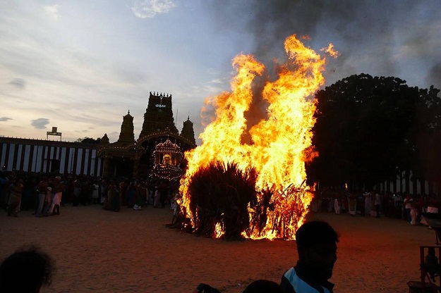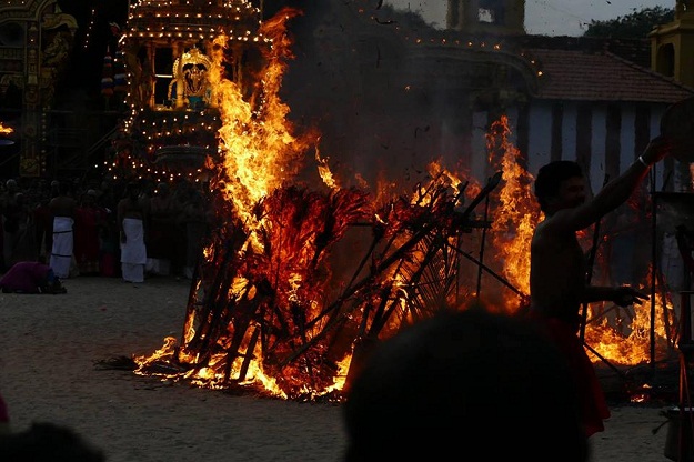 இதில் தீப ஸ்தபம்பத்தில் விளக்கேற்றி, சொக்கப்பனை கொளுத்தப்படும் நிகழ்வு இடம்பெற்றுள்ளது.