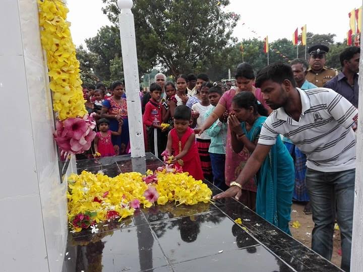 2016.12.26 இன்று காலை நினைவுத்தூபியும் நினைவு மண்டபமும் திறக்கின்ற நிகழ்வும் 8.46 மணிக்கு சுடறேற்றி அஞ்சலி நிகழ்வும் இடம்பெற்றது. இந்நிகழ்வில் வன்னிமாவட்ட பாராளுமன்ற உறுப்பினர் சிவமோகன் வடமாகாண சபை உறுப்பினர் புவனேஸ்வரன் புதுக்குடியிருப்பு கரைதுறைப்பற்று பிரதேச செயலாளர்கள் மாவட்ட பிரதம கணக்காளர் உறவுகள் நலன்விரும்பிகளென பலரும் கலந்துகொண்டனர்.