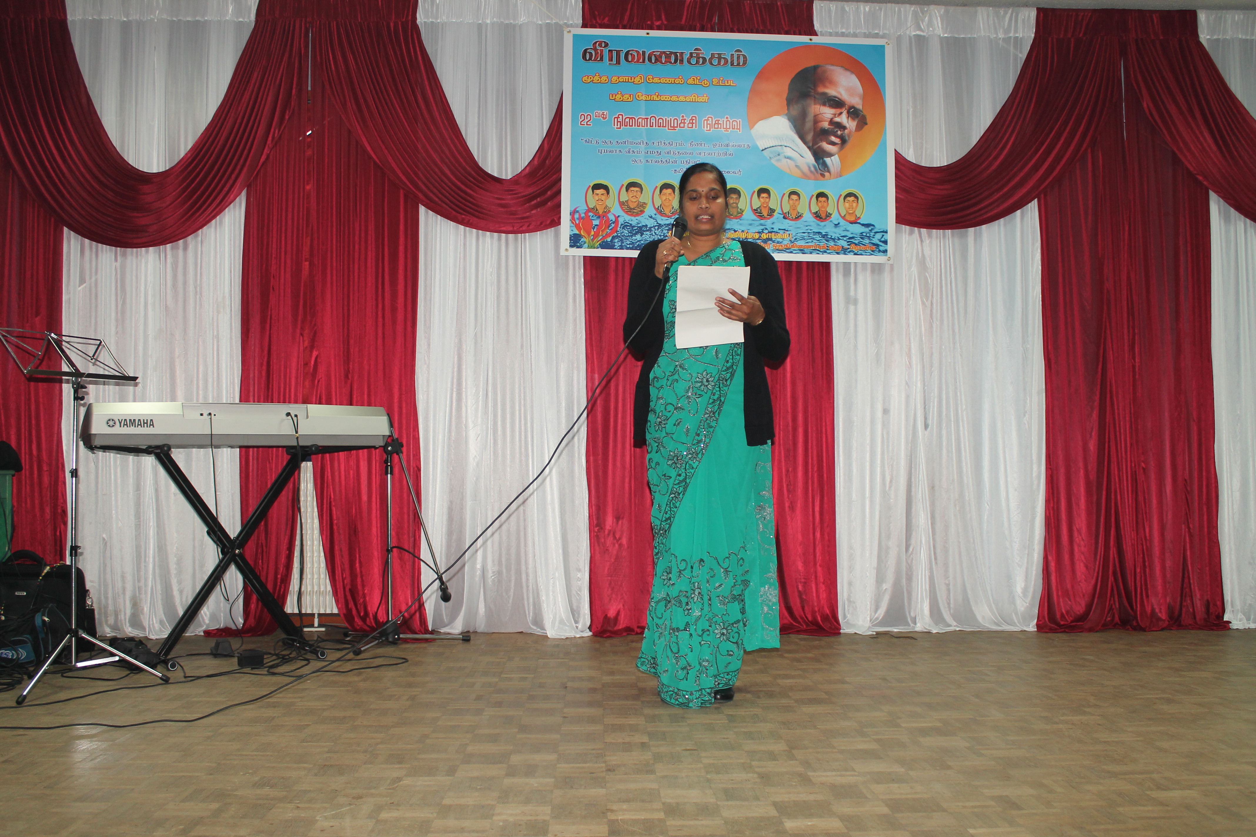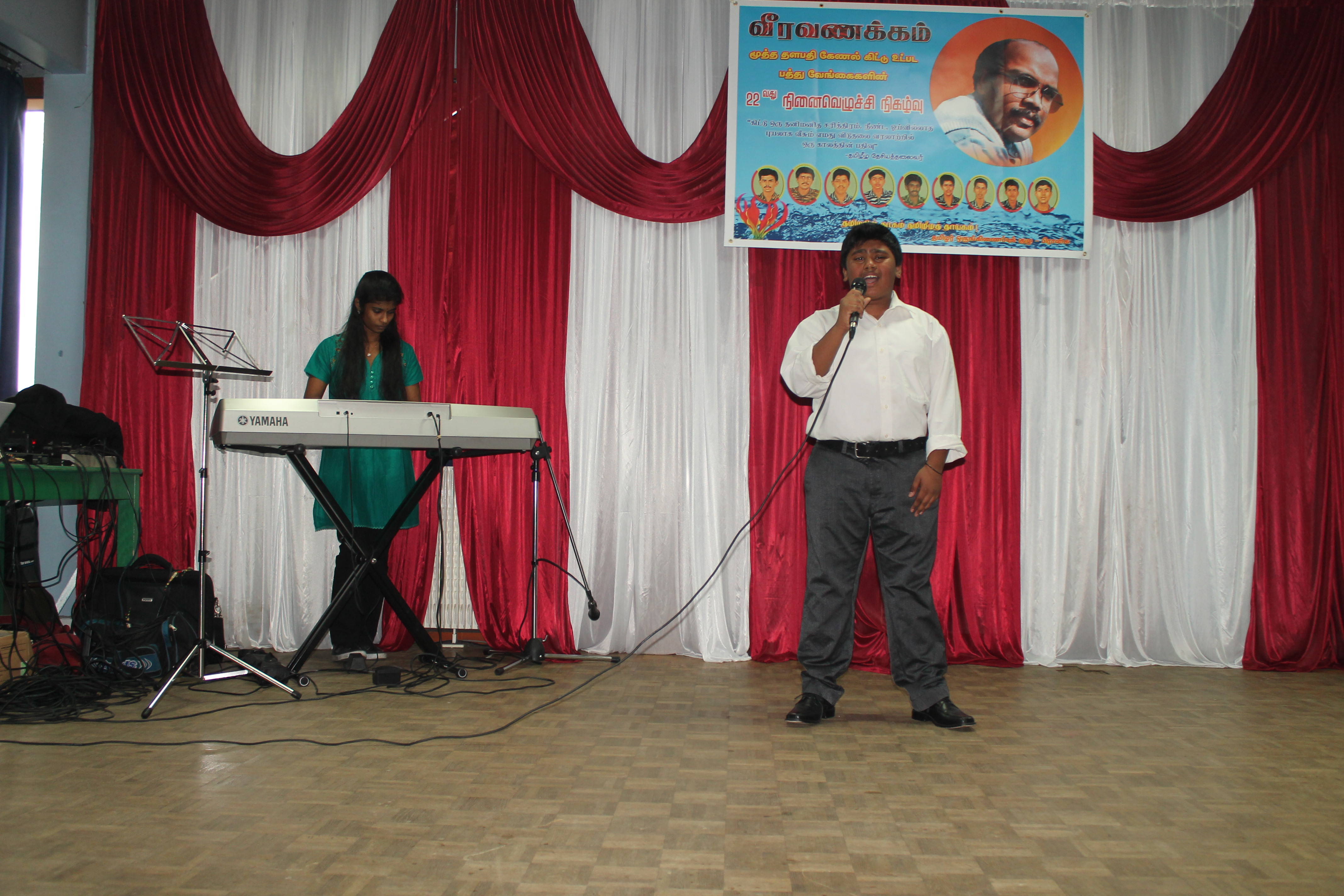 தமிழீழ மக்களின் உயிரை இந்திய தேசமும், தமிழக அரசம் உடன்காப்பாற்ற வேண்டும் என்று கேட்டு தன்னுரை மாய்த்துக் கொண்ட ஈகைத்தீ முத்துக்குமார் பற்றியும் தெரிவிக்கப்பட்டது. இம் மாவீரர்களின் நினைவுப் பாடல்களுக்கும், எழுச்சிப்பாடல்களுக்கும் நடனமும், மாவீரர்கள் பற்றிய கவிதைகளும், விடுதலைப்பாடல்களும் பாடப்பட்டது.
