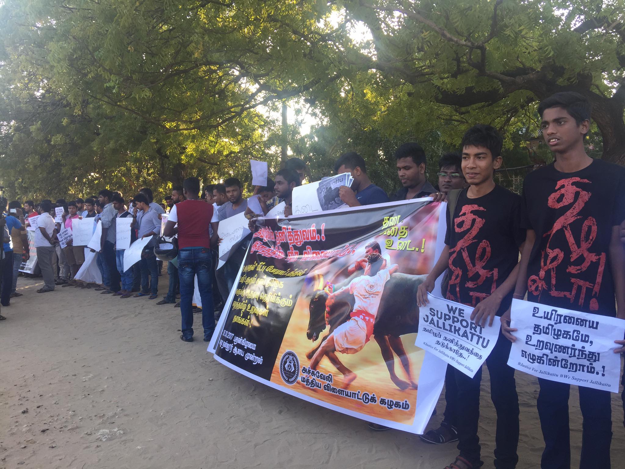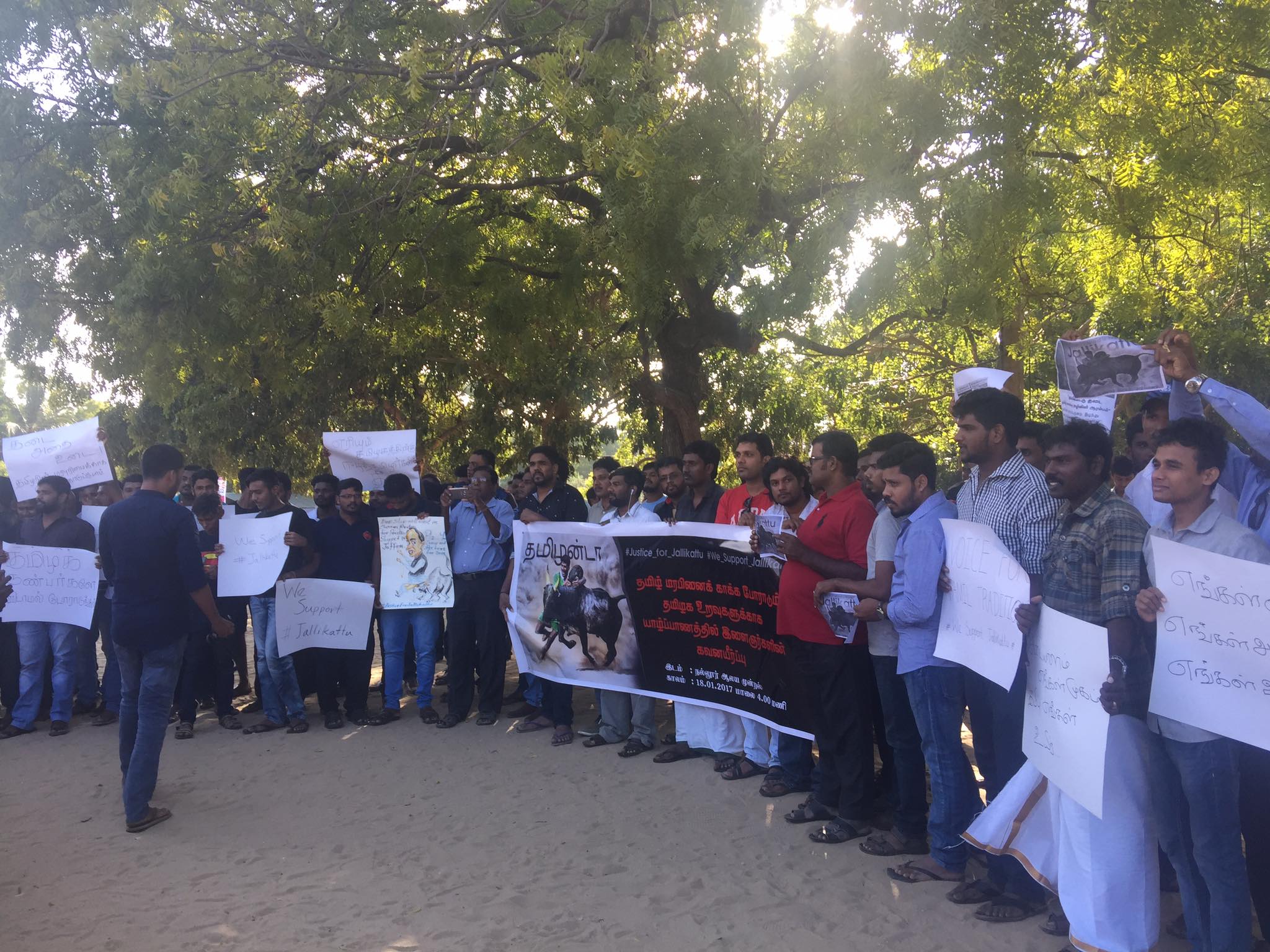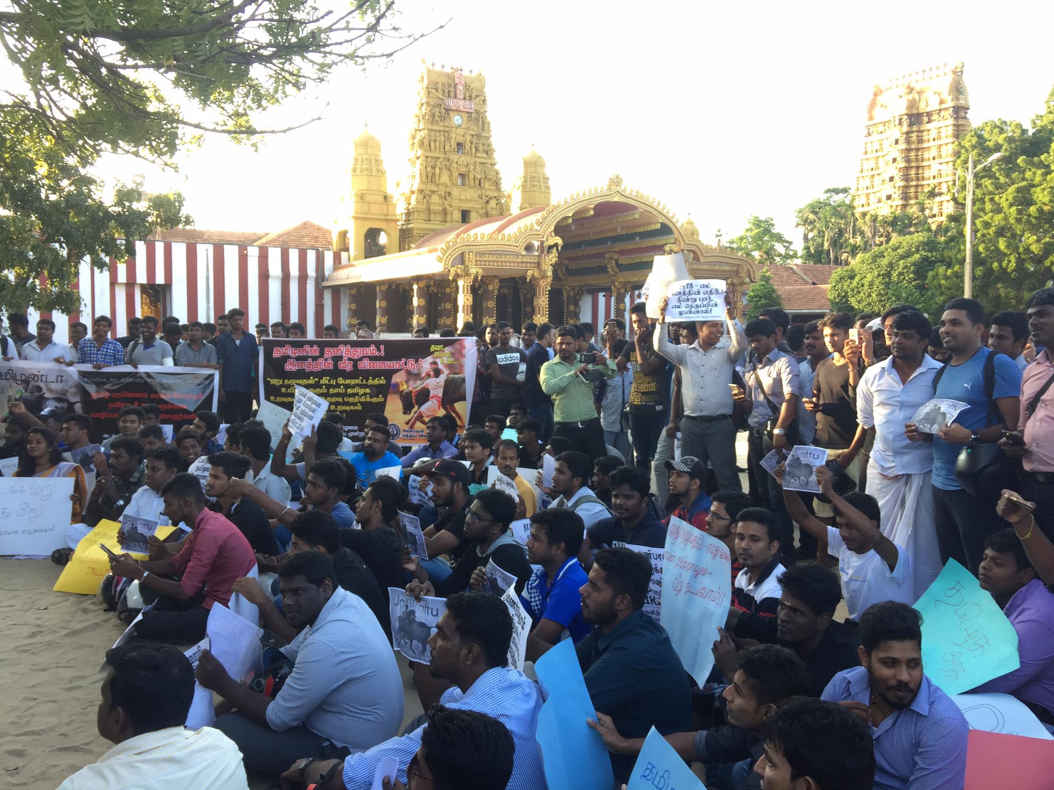 ஈழச்செய்திகள்சிறப்பு செய்திகள் ஜல்லிக்கட்டு தடைக்கு எதிராக யாழ் நல்லூரில் திரண்ட இளைஞர் படை! By Admin - January 19, 2017 0 383 ஜல்லிக்கட்டு தடைக்கு எதிராக போராடும் தமிழக மக்களுக்கு ஆதரவாக யாழ்ப்பாணம் – ஈழநல்லூரில் திரண்ட இளைஞர் படை….! படங்கள் நன்றி: சபேஸ்