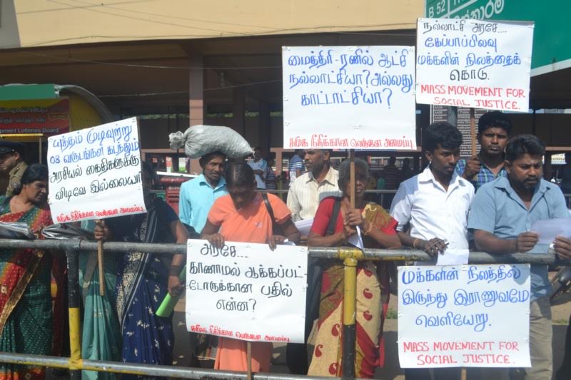 தமிழ்மக்களின் வாக்குகளைப் பெற்றுக் கொண்ட மைத்திரி-ரணில் அரசு ஏன் தமிழ் மக்களுடைய பிரச்சினையைத் தீர்க்க முடியாமல் உள்ளது என்பது பற்றி உரிய தரப்புக்கள் வாய் திறந்து கேள்வி எழுப்புதல் வேண்டும் என்று தெரிவித்து இன்றைய கவனயீர்ப்புப் போராட்டத்தினை வவுனியாவில் நடாத்தியுள்ளார்கள்.