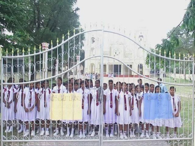 முல்லைத்தீவு மாவட்டத்தின் கேப்பாபுலவு மக்களின் காணிகளை அரசாங்கம் விடுவிக்க வேண்டும் என்று கோரி இன்று யாழ் புனித ஜேம்ஸ் மகளிர் பாடசாலை மாணவிகளும் கவனயீர்ப்பு போராட்டத்தில் ஈடுபட்டனர்.