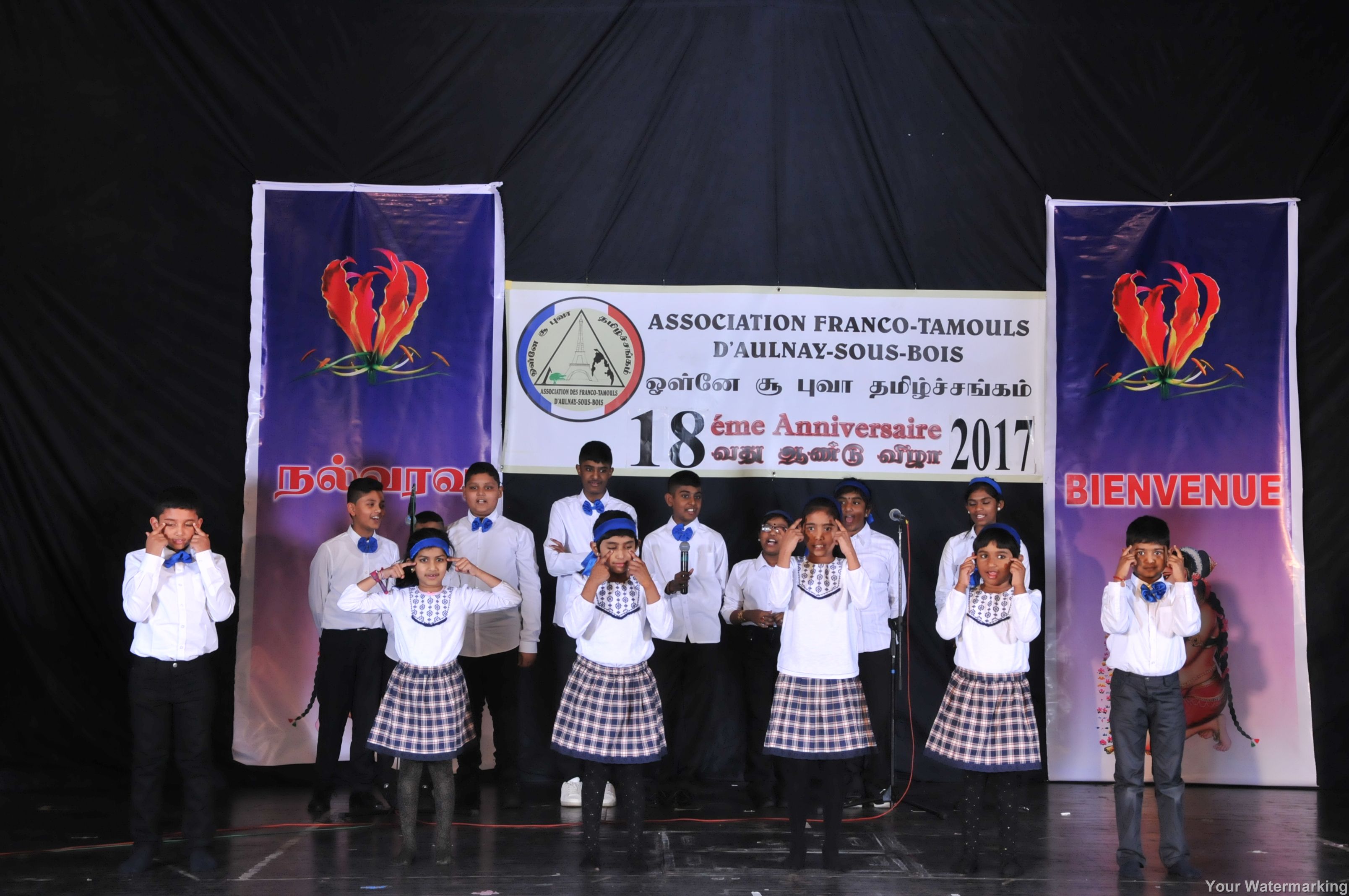 கிராமிய நடனம், கண்ணன் நடனம், தமிழ் இசைக்கீதம், வாத்திய இசைகள், எழுச்சி நடனங்கள், நாடகங்கள், சுரத்தட்டு, பாம்பு மயில் நடனம், தாளலயம், கவிதா நிகழ்வு, ஆங்கில நாடகங்கள், திருக்குறள், சிறுவர் உரைகள் என பல நிகழ்வுகள் நடைபெற்றன. நிகழ்வில் சிறப்பாக பண்டாரவன்னியன் நாடகமும், சங்கிலியன் நாடகமும் மிகவும் சிறப்பாக அமைந்திருந்து. பிரெஞ்சு மொழியிலே நடித்த குழந்தைகள் சிறப்பாக அதனைச் செய்தும் நடித்துக்காட்டி மக்களின் பாராட்டுதல்களையும் கரகோசத்தையும் பெற்றுக்கொண்டனர்.