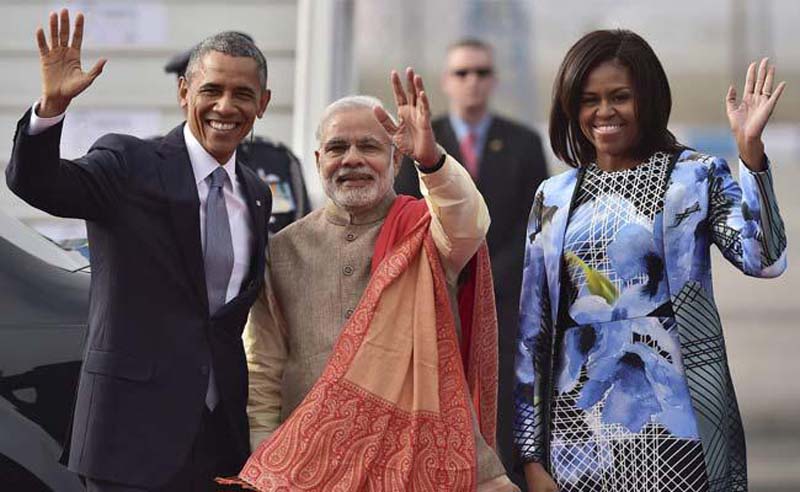 இன்று காலை டெல்லியை சென்றடைந்துள்ள அமெரிக்க ஜனாதிபதி பராக் ஒபாமாவும் அவரது பாரியாரும், இந்திய பிரதமர் நரேந்திர மோடியால் வரவேற்கப்பட்டனர்.