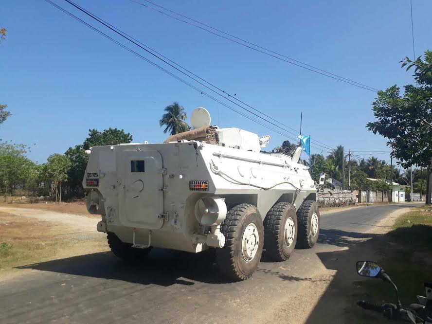 மேலும் வெள்ளை நிறப் பூச்சுகளுடன் ஐ.நா. அடையாளம் பொறிக்கப்பட்ட கொடியுடன் 68 வாகனங்களும் ஒன்றன் பின் ஒன்றாக கடற்கரையோர வீதியின் ஊடாகச் சென்றதை அடுத்து பொதுப்போக்குவரத்து சிறிது பாதிக்கப்பட்டிருந்தது.