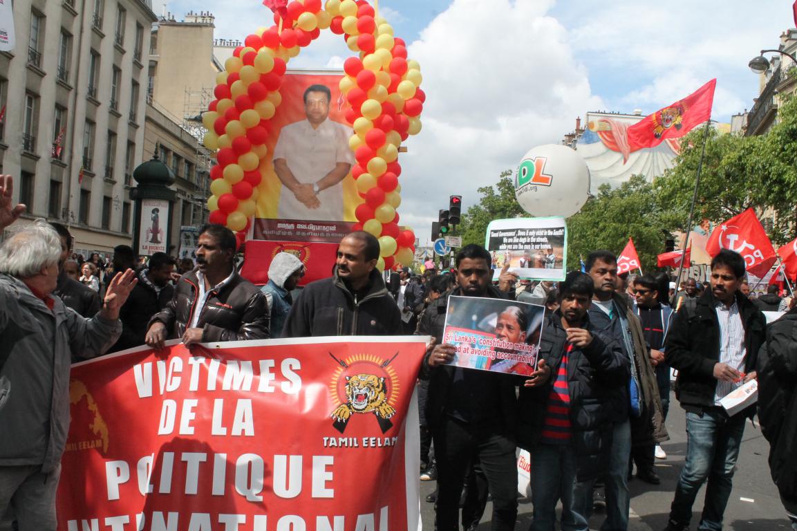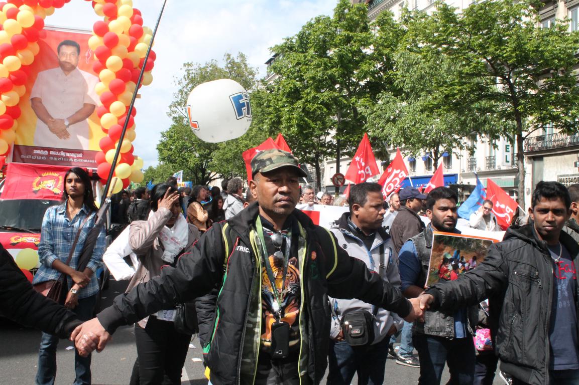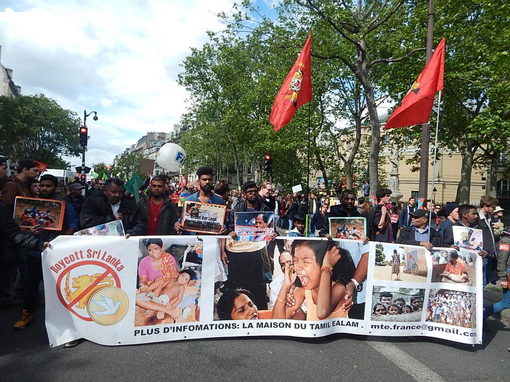 பிரான்ஸ் தொழிற்சங்கங்களும் வெளிநாட்டவர்களுடன் இணைந்து தமிழ் மக்களும் ஆர்வத்துடன் கலந்துகொண்டிருந்தனர். பிரான்சு தமிழர் ஒருங்கிணைப்புக் குழுவின் ஏற்பாட்டில் நிகழ்வில் தமிழ் மக்கள் உணர்வெழுச்சியுடன் கலந்துகொண்டிருந்தனர்.