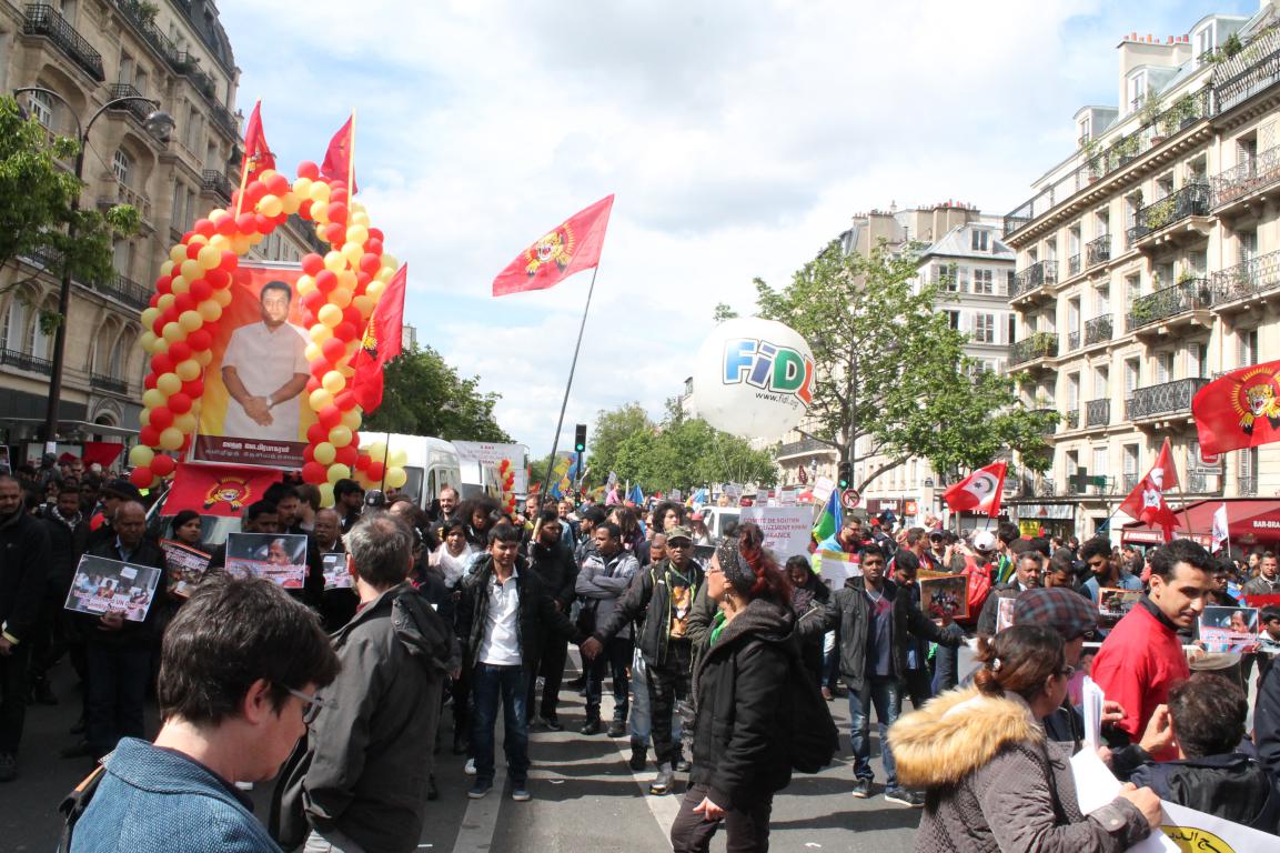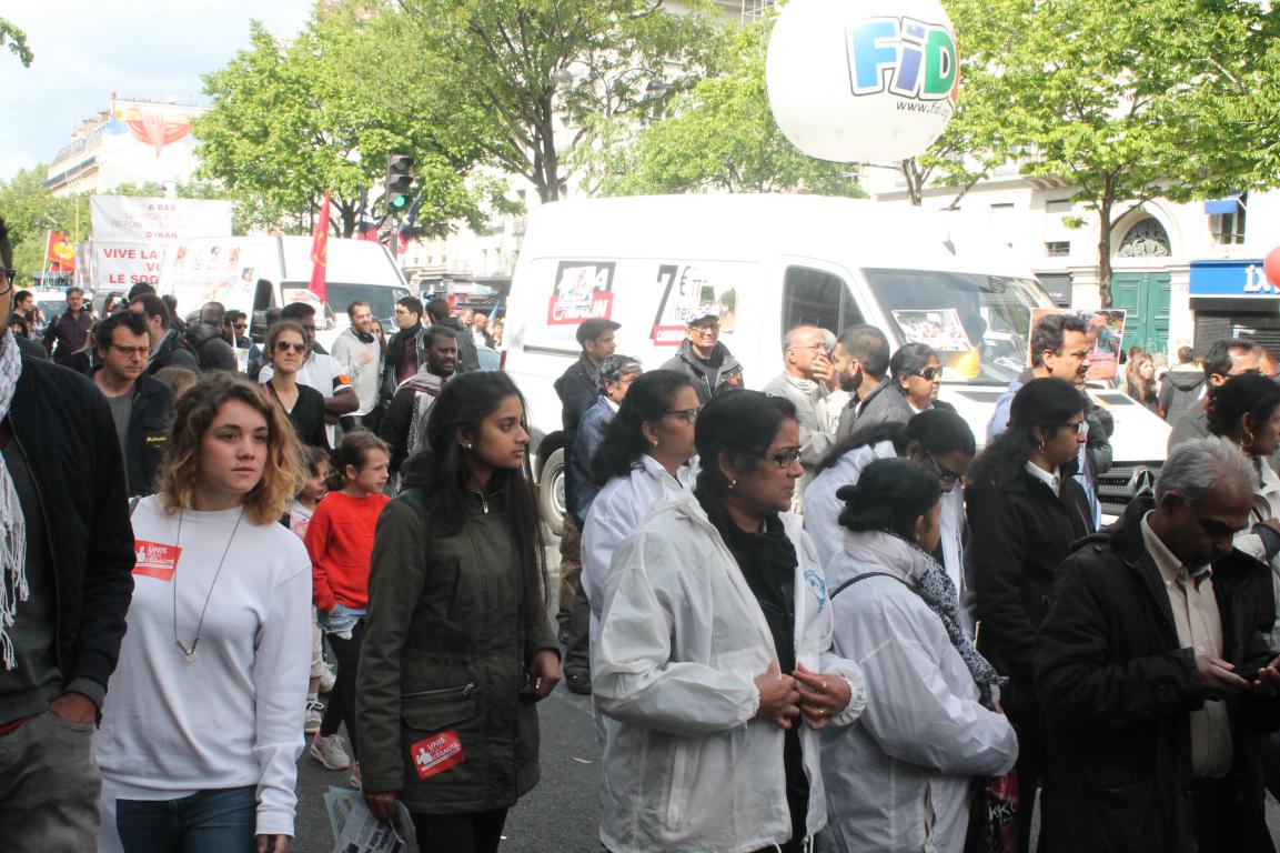 பிரான்சில் பாரிஸ் République பகுதியில் இருந்து பிற்பகல் 14.00 மணியளவில் ஆரம்பித்த மே 1 தொழிலாளர் நாள் பேரணி பாரிஸின் பிரதான வீதிகளின் ஊடாக நகர்ந்து Nation சுற்று வட்டப் பகுதியைச் சென்றடைந்தது.
