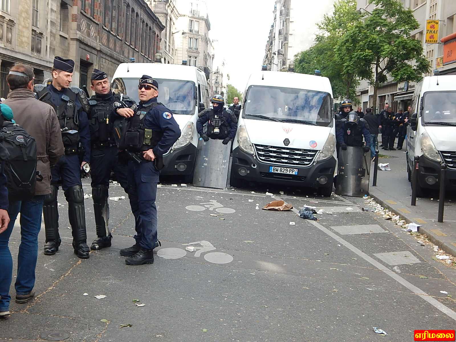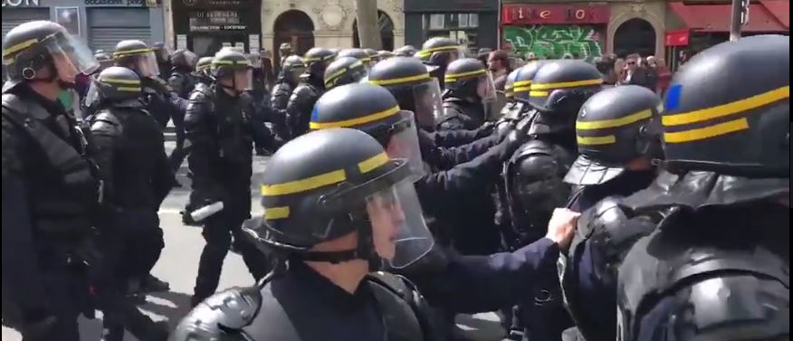 இன்று திங்கட்கிழமை, பாரிசில் இடம்பெற்ற மே தின ஊர்வலத்தில் பெரும் வன்முறை வெடித்துள்ளது. கலவரம் அடக்கும் படையினரான CRS படையினரில் நால்வர் படுகாயங்களுக்கு உள்ளாகியுள்ளனர். அவர்களை நோக்கி பெற்றோல் எரிகுண்டு வீசியுள்ளதாக தெரிவிக்கப்பட்டுள்ளது.