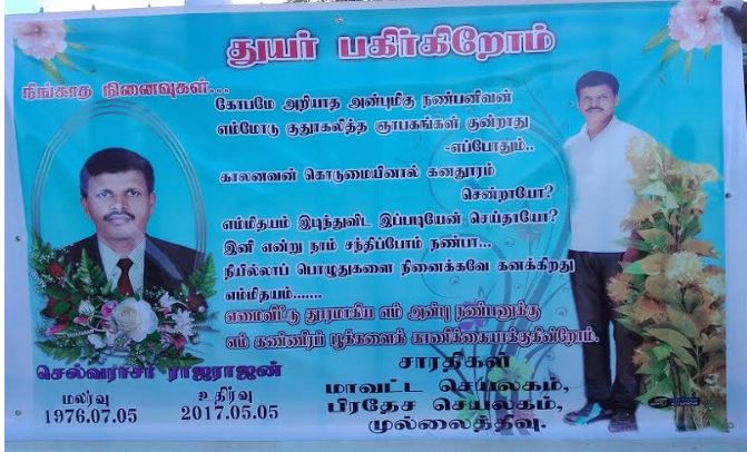 ஜயன்கோவிலடி முள்ளியவளையை சேர்ந்த மூன்று பிள்ளைகளின் தந்தையான செல்வராசா ராஜராஜன் (வயது 41) என்பவர் உயிரிழந்துள்ளார்.