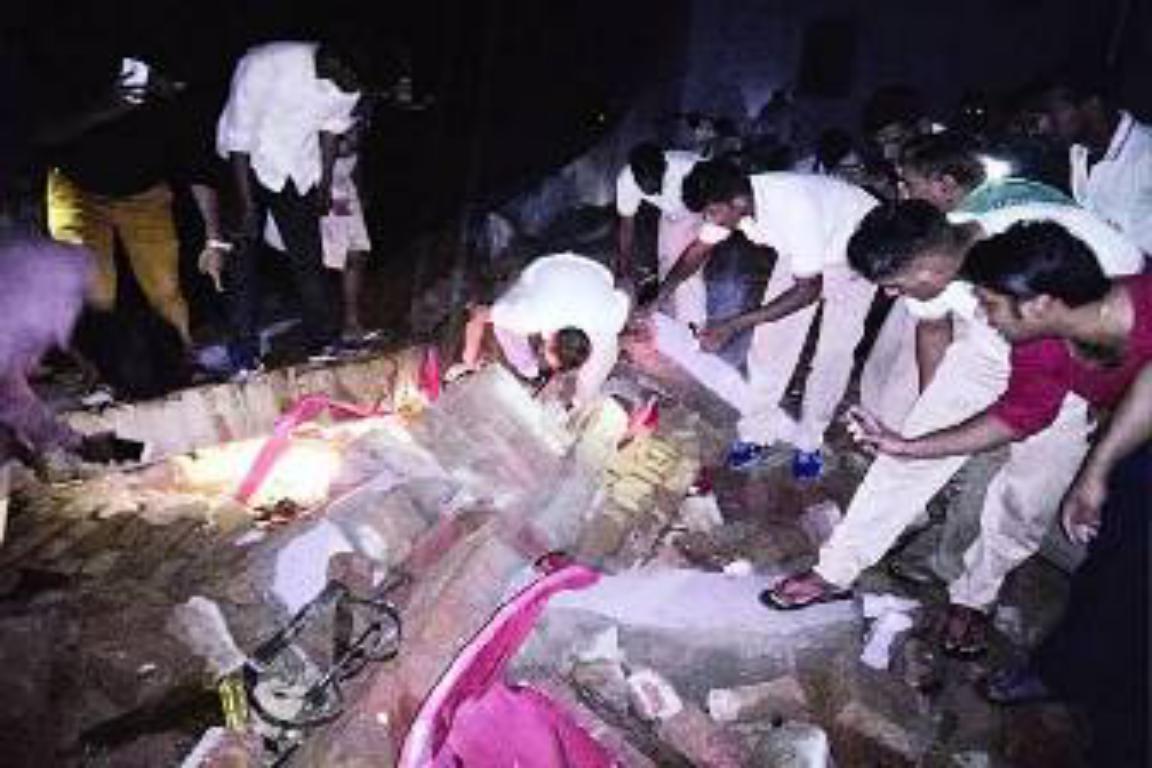 ராஜஸ்தான் மாநிலம் பாரத்பூரில் திருமண மண்டபத்தின் சுவர் இடிந்து விழுந்து விபத்துக்குள்ளானது. இவ்விபத்தில் இடிபாடுகளுக்கிடையே சிக்கி 22 பேர் பலியாயினர். மேலும் படுகாயமடைந்த 26 பேர் சிகிச்சைக்காக மருத்துவமனையில் அனுமதிக்கப்பட்டுள்ளனர்.