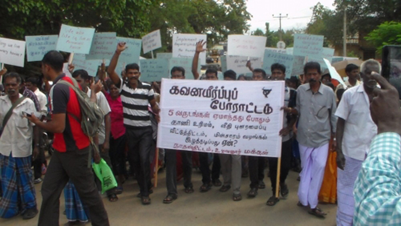 5 வருடங்கள் ஏமாந்தது போதும். காணி உரிமம் வீதி புனரமைப்பு வீட்டத்திட்டம் மின்சாரம் போன்றவற்றை இழுத்தடிப்பது ஏன் என்ற கருத்தினாலான பதாதைகளை ஏந்தியவண்ணம் குறித்த பகுதி மக்கள் ஆர்ப்பாட்டத்தில் ஈடுபட்டிருந்தனர்.