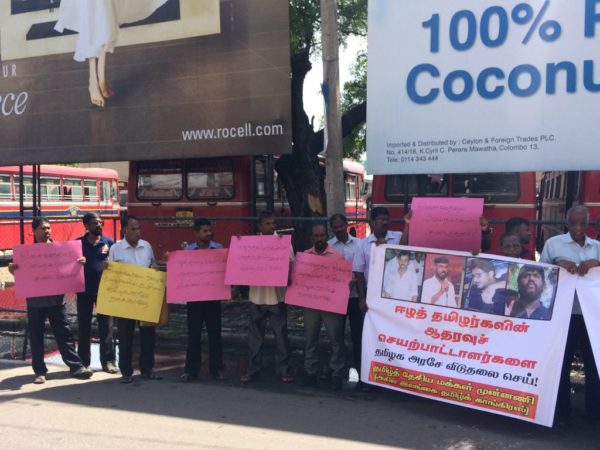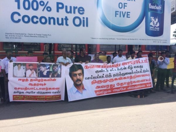 தமிழக அரசினால் கைதுசெய்யப்பட்டு குண்டர் சட்டத்தின் கீழ் சிறையில் தடுத்து வைக்கப்பட்டு உள்ள ஈழத் தமிழ் ஆதரவாளர் திருமுருகன்காந்தியின் விடுதலையை வலியுறுத்தி யாழில்.போராட்டம் நடைபெற்றது. யாழ்.மத்திய பேருந்து நிலையம் முன்பாக காலை 10 மணியளவில் குறித்த போராட்டம் முன்னெடுக்கப்பட்டது.