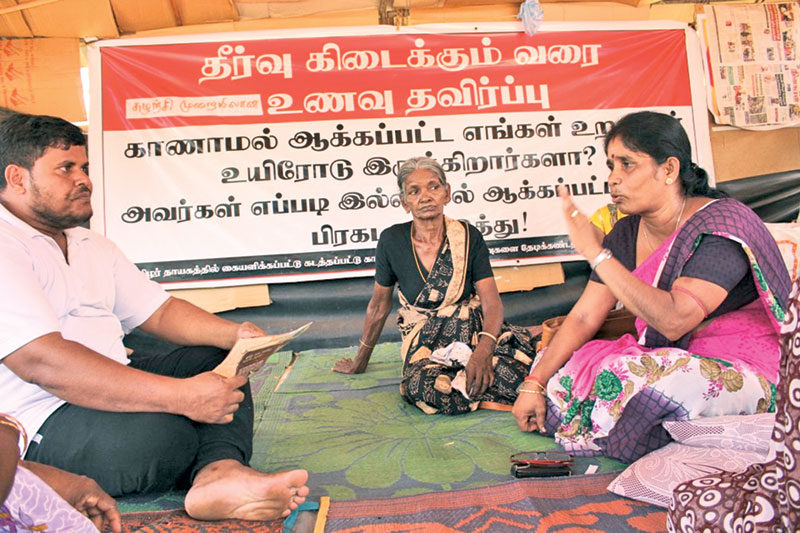இந. நிலையில் எத்தனை அலுவலகங்களை அமைத்தாலும் எத்தனை வருடங்கள் ஆனாலும் எமது போராட்டத்தை கைவிட முடியாது. எங்கள் பிள்ளைகள் தொடர்பான சரியான தீர்வு வழங்கப்படும் வரை போராட்டம் தொடரும் எனவும் அவர் தெரிவித்தார். வவுனியாவில் தொடர்ச்சியாக சுழற்சி முறையிலான உண்ணாவிரதப்போராட்டத்தில் ஈடுபட்டிருக்கும் தாய்மார்களை சந்தித்து கலந்துரையாடிய ஐக்கியதேசியக் கட்சியின் வவுனியா மாவட்ட முன்னாள் வேட்பாளர் எ.எஸ்.எம்.தாயுன் கருத்து தெரிவிக்கையில்: