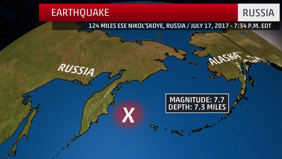 அமெரிக்காவின் புவியியல் ஆய்வு மற்றும் அமெரிக்க பசிபிக் சுனாமி மையம் சார்பில் வெளியிடப்பட்டுள்ள எச்சரிக்கை செய்தியில், ரஷ்யாவின் நிகோல்ஸ்கோயே (Nikol’skoye) தீவிலிருந்து 200 கி.மீ தொலைவில் 7.8 ரிக்டர் அளவில் கடலுக்கடியில் நிலநடுக்கம் ஏற்பட்டுள்ளது.