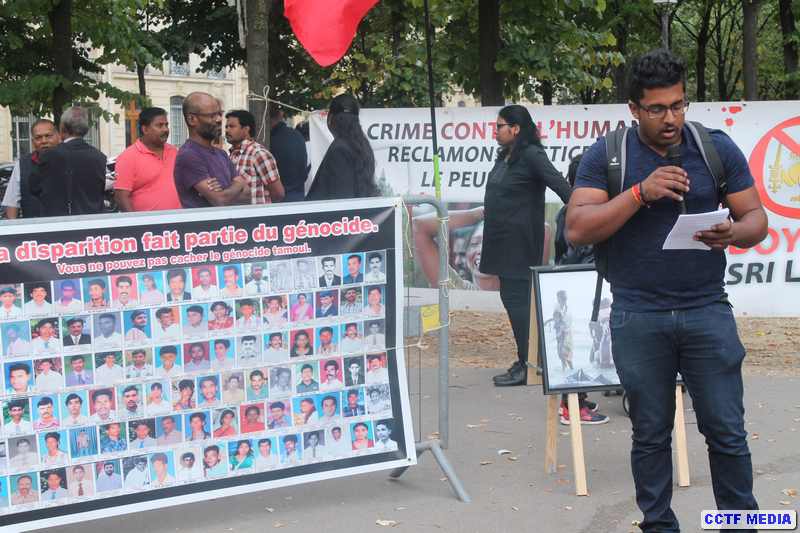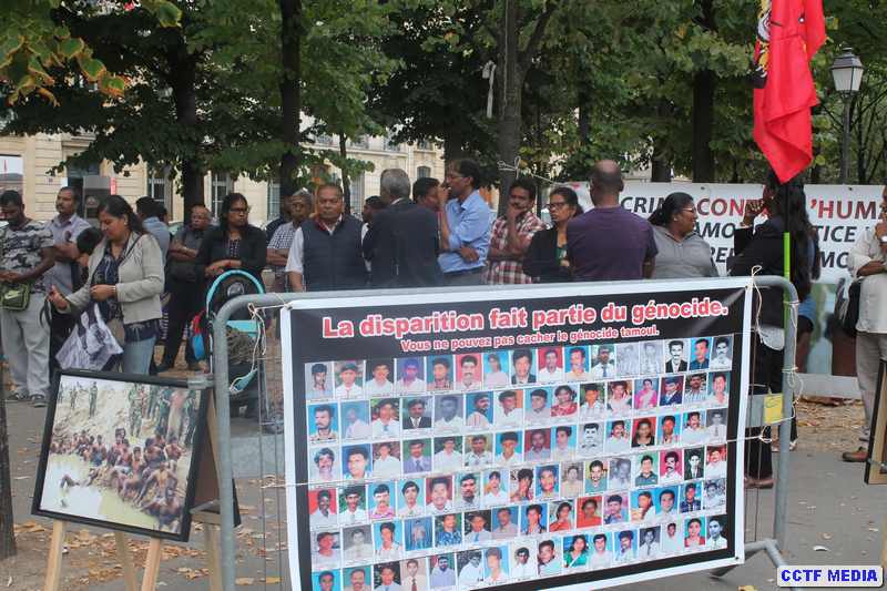 தமிழர் தாயகத்தில் கடத்தப்பட்டு வலிந்து காணாமல் ஆக்கப்பட்ட தமது உறவுகளைத் தேடி அங்கு நடைபெறும் போராட்டங்களுக்கு வலுச்சேர்க்கும் முகமாக அனைத்துலக காணாமல் போனோர் தினமான நேற்று (30.08.2017) புதன்கிழமை பிரான்சு பாராளுமன்றத்திற்கு அருகில் மாலை 3 மணி முதல் கவனயீர்ப்புப் போராட்டம் இடம்பெற்றது.