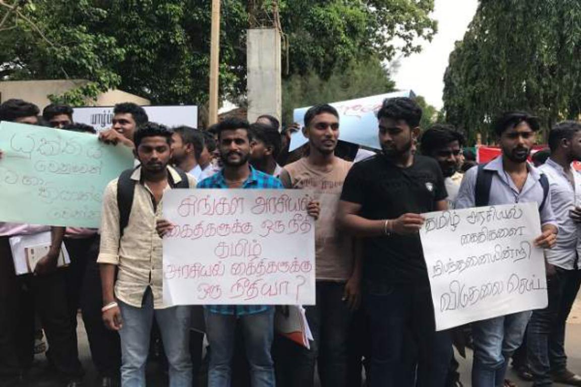 அரசியல் கைதிகளின் பிரச்சனைக்கு உரிய தீர்வை வழங்க கோரியும் உண்ணாவிரத கைதிகளின் கோரிக்கையை உடனடியாக தீர்க்க கோரியும் யாழ் பல்கலைக்கழக சமூகத்தினர் பாரிய கவனயீர்ப்பு போராட்டம் ஒன்றினை தற்பொழுது முன்னெடுத்து வருகின்றனர்.