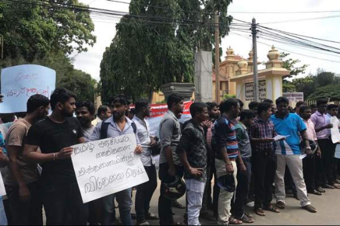 யாழ் பல்கலைக்கழக மாணவர் ஒன்றியத்தின் ஏற்பாட்டில் இன்று காலை 10 மணிக்கு இந்த கவனயீர்ப்பு போராட்டம் ஆரம்பிக்கப்பட்டுள்ளது .