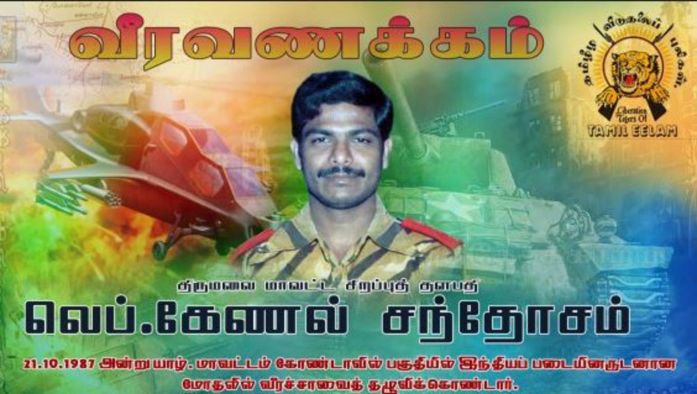 கோண்டாவில் பகுதியில் 21.10.1987 அன்று இந்தியப் படையினருடனான மோதலின்போது வீரச்சாவைத் தழுவிக் கொண்ட தமிழீழ விடுதலைப் புலிகளின் ஆரம்பகால மூத்த உறுப்பினர்களில் ஒருவரும், முன்னாள் திருகோணமலை மாவட்டச் சிறப்புத் தளபதியுமான லெப். கேணல் சந்தோசம் மாஸ்ரர் அவர்களின் 34 ஆம் ஆண்டு வீரவணக்க நாள் இன்றாகும்.