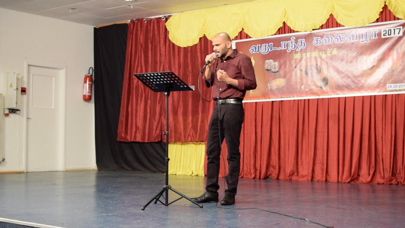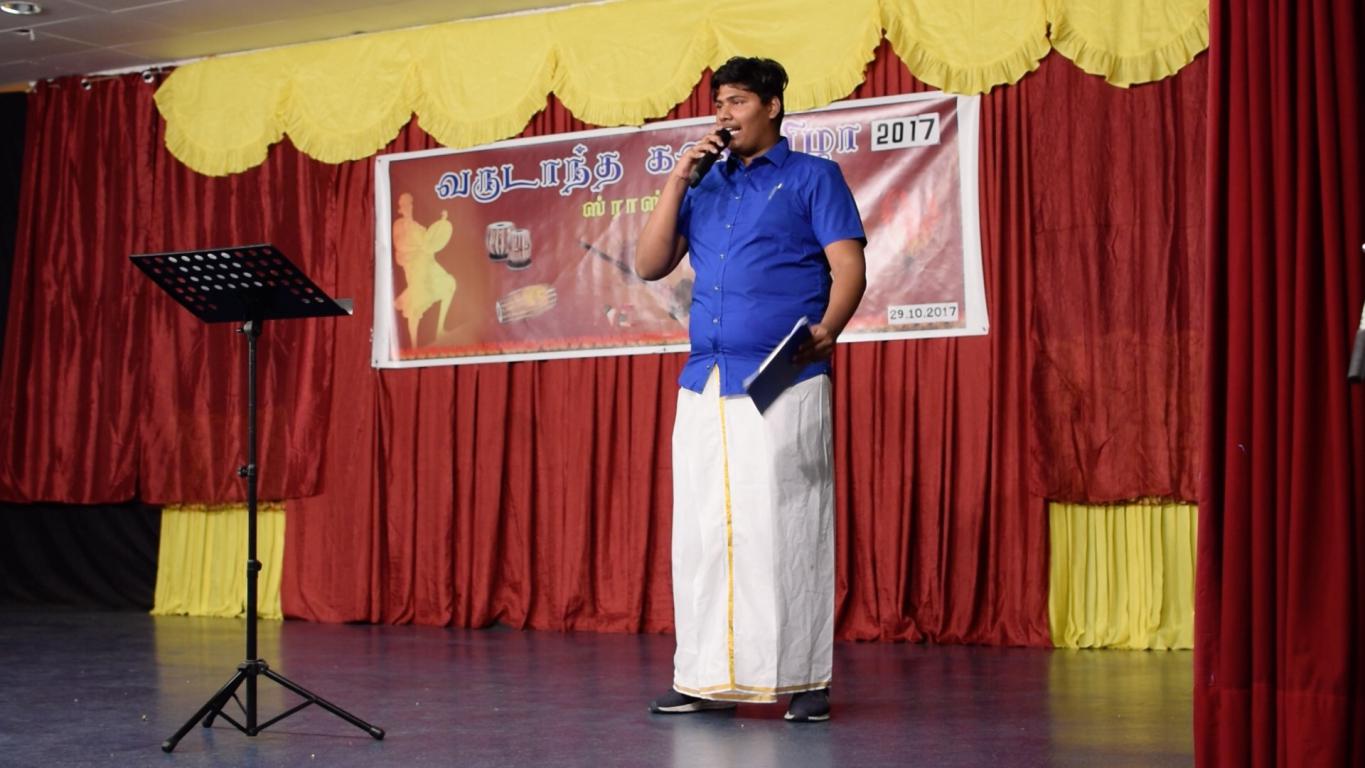 அதனைத் தொடர்ந்து தமிழர் கலைபண்பாட்டுக்கழகத்தின் மூத்த கலைஞர்களில் ஒருவரான திரு. தயாநிதி அவர்கள் தனிநடிப்பை செய்திருந்தார். பல உறவுகள் தமிழீழ மண்ணில் காணாமல் ஆக்கப்பட்டு பறிகொடுத்து பரிதவிப்பில் வீதியில் நீதி கேட்டு நிற்கும் பாத்திரத்தை கண்முன்னால் கொண்டு வந்து கண்ணீரை வரவழைத்த போதும், அதில் இன்னும் ஒருபடி மேலாகச் சென்று எங்கள் மண்ணில் சிங்களத்தின் தமிழின அழிப்பிலிருந்து மக்களை காப்பாற்றவும் தமிழ் மக்களின் நிம்மதியான வாழ்வுக்காக ஒரு தேசம் வேண்டும் என்பதற்காக சிங்கள தேசத்தாலேயே ஆயுதப் போராட்டத்திற்கு தள்ளப்பட்டு அதில் தங்கள் உடல் உறுப்புக்களையும், அவயவங்களையும் இழந்து எம்மக்கள் எமக்கு உதவுவார்கள் என்ற நம்பிக்கையோடு இருக்கும் எம் தேசமக்களுக்கு உதவும் மிகப்பெரிய மனிதநேயப் பணியை செய்யவிடாது இங்கு முடக்குகின்ற தேசியம் பேசும் சிலரின் செயற்பாடுகள் மிகுந்த கவலையைத் தருகின்றது என்பதையும் மக்களுக்கு கூறியிருந்தார். ஆனாலும் இவரின் இந்த உயரிய பணி தொடர்ந்தும் நடைபெறும் அதை இங்குள்ள மக்கள் தொடர்ந்து கைகொடுப்பார்கள் அந்த வாக்கினை சபையில் உள்ள மக்கள் நீங்கள் தெரிவிக்க வேண்டும் என்று கேட்டுக்கொண்ட போது மக்கள் கரகோசத்தின் மூலம் பதிலினை கொடுத்திருந்தனர்.