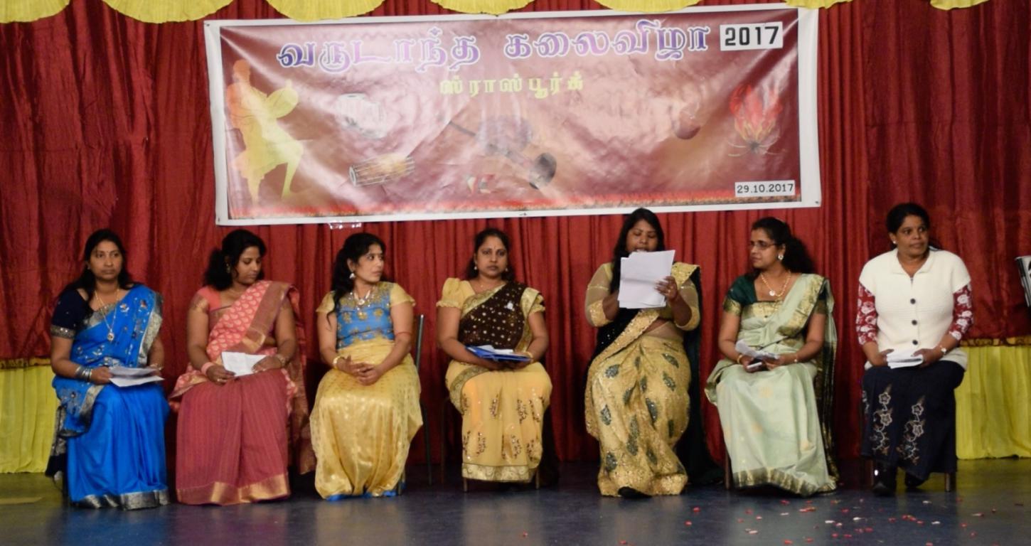 ஸ்ராஸ்புக் தமிழ் ஆர்வலர்களால் புதுவையரின் புதல்விகள் என்ற தலைப்பிலான கவியரங்கமும் நடைபெற்றது. தாயகத்தில் விழுப்புண் அடைந்த மக்களுக்கு உதவுமுகமாக சிற்றுண்டிகளைச் செய்து வழங்கி அதில் கிடைக்கும் சொற்ப பணத்தை ஒன்று சேர்த்தும், நல்லுள்ளங்கள் வழங்கும் உதவியையும் ஒருங்கமைத்து உதவி வருகின்ற மனித நேயச் செயற்பாட்டிற்கு எம்மவர்கள் தமது குடும்பங்களாக வந்து தம்மாலான பணியை அர்ப்பணிப்புடன் செய்து வருவதையும் அந்த நிகழ்வில் காணக்கூடியதாக இருந்தது. மண்டபம் நிறைந்த மக்களோடு நடைபெற்ற இந்தக்கலைநிகழ்வு இரவு 20.00 மணியளவிலே சிறப்பாக நடைபெற்று முடிந்திருந்தது.