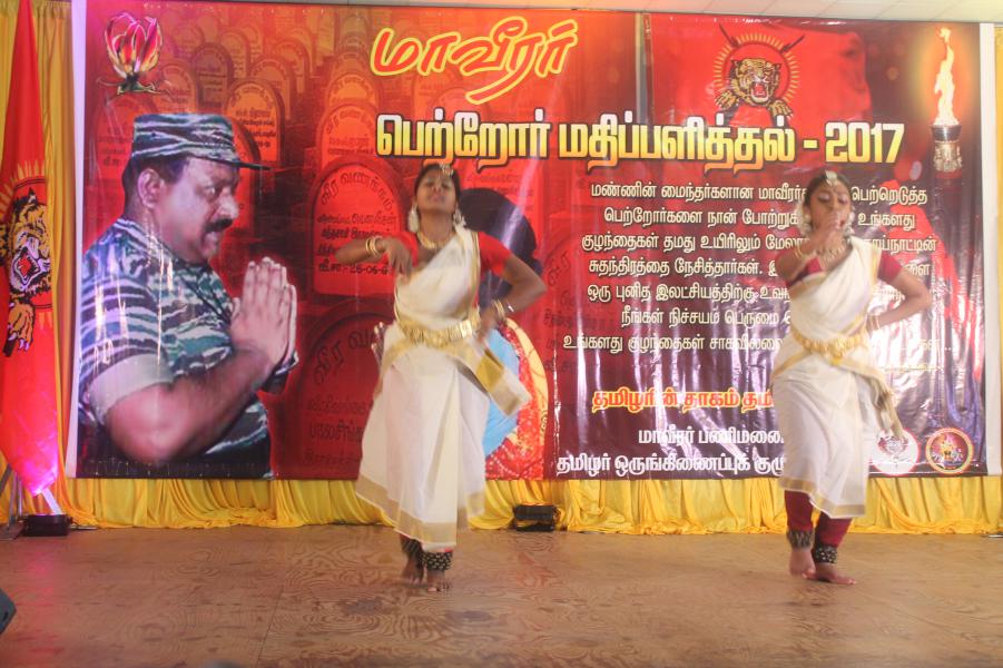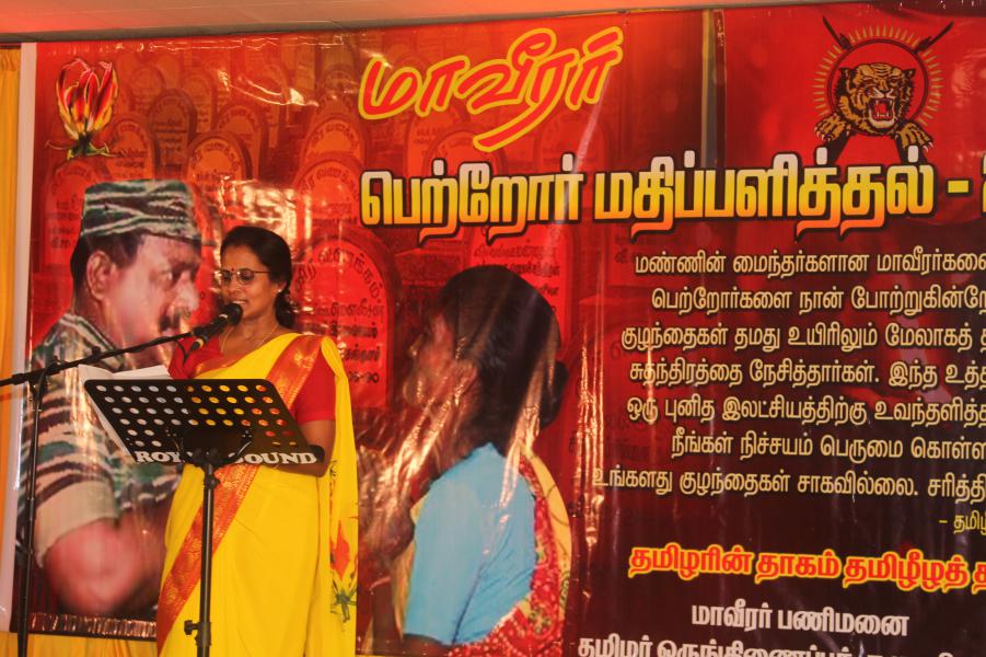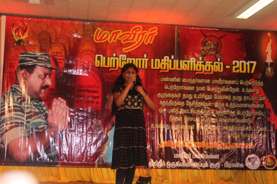 தொடர்ந்து அரங்க நிகழ்வுகள் ஆரம்பமாகின. அரங்க நிகழ்வுகளாக தமிழ்ச்சோலை மாணவர்களின் எழுச்சி நடனங்கள், மாவீரர் கலைத்திறன்போட்டிகளில் வெற்றிபெற்ற மாணவ, மாணவிகளின் பேச்சு, தனிநடிப்பு, பாட்டு, கவிதை என்பன இடம்பெற்றன.