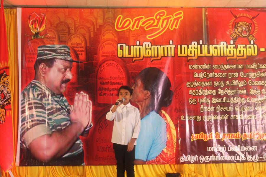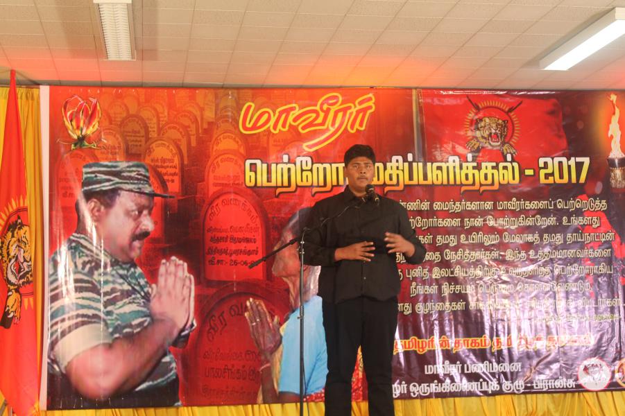 அவர் தனது உரையில், மாவீரர்கள் தமக்கென வாழாமல் தமது இனத்துக்காக வாழ்ந்து சாவடைந்தவர்கள். இவ்வாறு சாவடைந்த தேசப்புதல்வர்களை மதிப்பளிப்பு செய்வது சங்ககாலம், சேர சோழ பாண்டிய காலத்துக்கு அதாவது 1000 வருடங்களுக்கு முன்னர் இருந்து வந்துள்ளது.