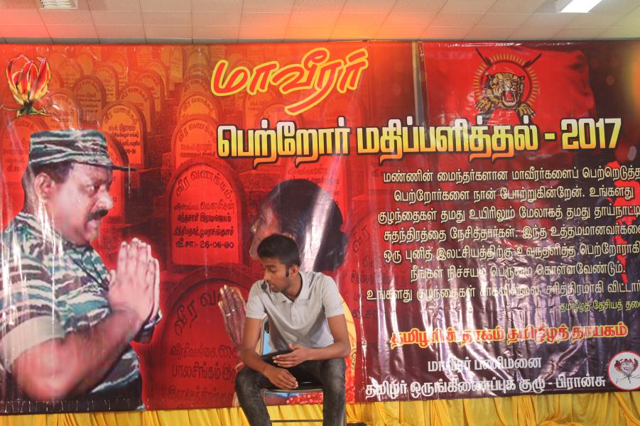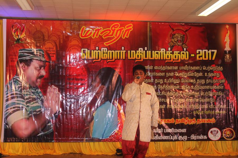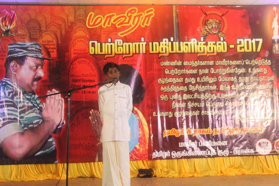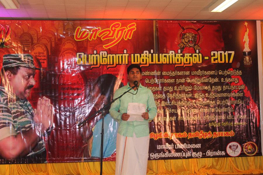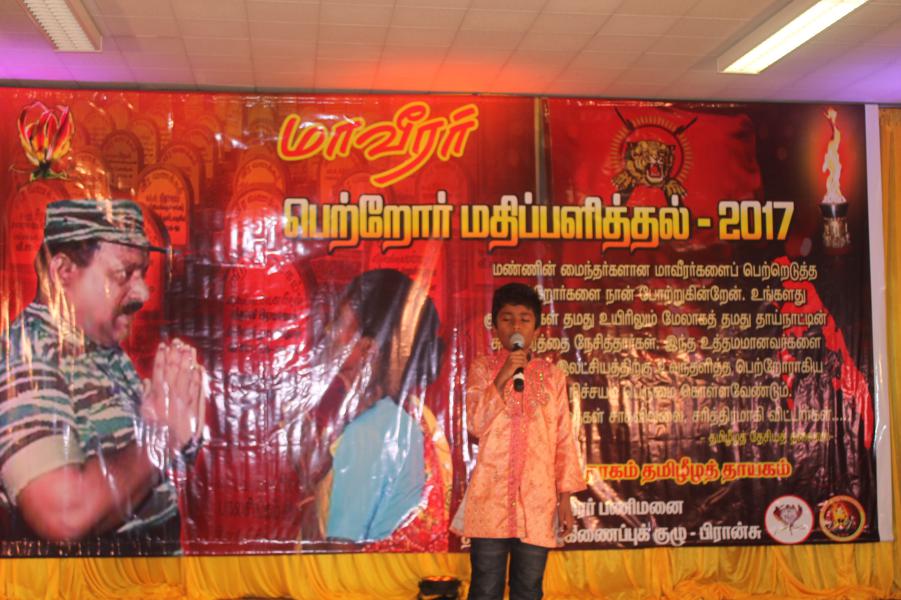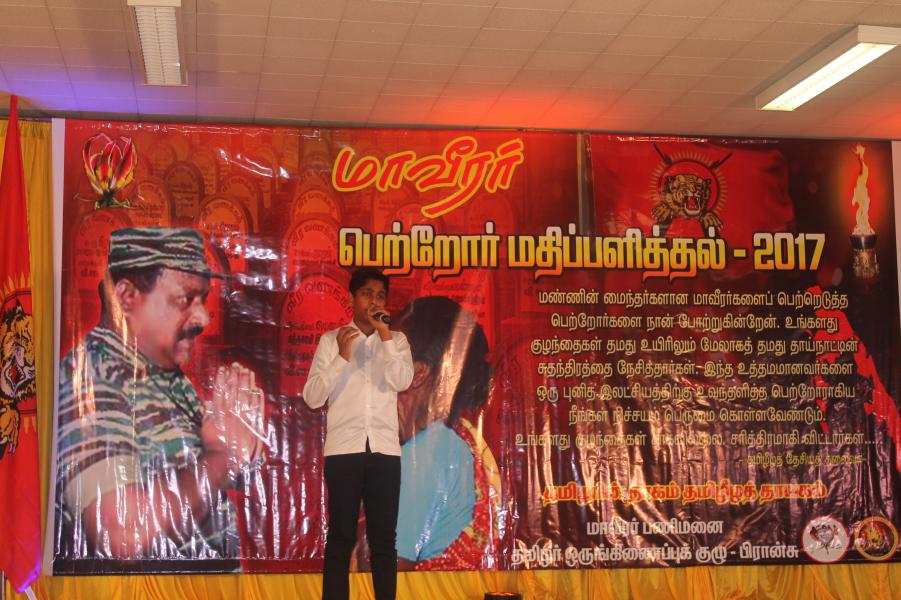 பிரான்சு தமிழர் ஒருங்கிணைப்புக்குழு மாவீரர் பணிமனையின் ஏற்பாட்டில் பிரான்சு மாவீரர் பெற்றோர் உரித்துடையோர் மதிப்பளிப்பு நிகழ்வு 19.11.2017 ஞாயிற்றுக்கிழமை முற்பகல் 11.00 மணிக்கு பொண்டிப் பகுதியில் மிகவும் உணர்வுபூர்வமாக இடம்பெற்றது.