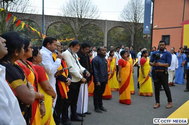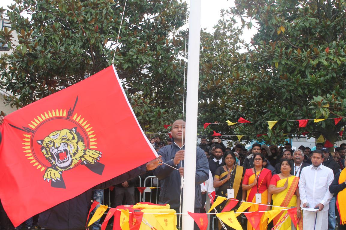 தமிழீழத் தேசியக் கொடியினை பிரான்சு தமிழர் ஒருங்கிணைப்புக் குழுப் பொறுப்பாளர் திரு.மகேஸ் அவர்கள் ஏற்றிவைத்தார்.