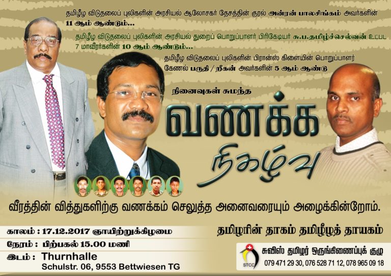 தமிழீழ விடுதலைப் புலிகளின் அரசியற்துறைப் பொறுப்பாளர் பிரிகேடியர் சு.ப. தமிழ்ச்செல்வன் உள்ளிட்ட 7 மாவீரர்களின் 10 ம் ஆண்டும்..