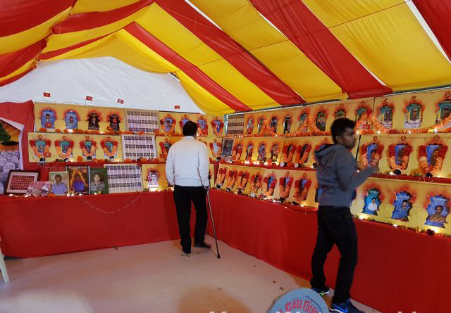 சரியாக 15.30 மணிக்கு அகவணக்கத்தைத் தொடர்ந்து பொதுச்சுடரினை மாவீரர் குடும்பத்தினர் ஏற்றி வைக்க துயிலுமில்லப் பாடலைத்தொடர்ந்து மாவீரர் குடும்பத்தினர் தங்கள் உறவுகளுக்கான திருவுருவப்படத்திற்கு விளக்கேற்றி மலர் வணக்கத்தை செலுத்தியிருந்தனர். மஞ்சள் சிவப்பு, எழுச்சி நிறங்களைக் மிகவும் அழகான சட்டத்திற்குள் மாவீரர்களுடைய படங்கள் வைக்கப்பட்டிருந்தது.