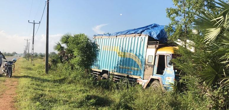 கொழும்பில் இருந்து யாழ்ப்பாணம் நோக்கி இரும்பகம் ஒன்றிற்கு பொருட்களை ஏற்றிச்சென்ற பார ஊர்தியின் சாரதிக்கு திடீர் மாரடைப்பு ஏற்பட்டமையினால் பாரஊர்தி வீதியை விட்டு கீழிறங்கி விபத்துக்குள்ளாகியுள்ளது.
