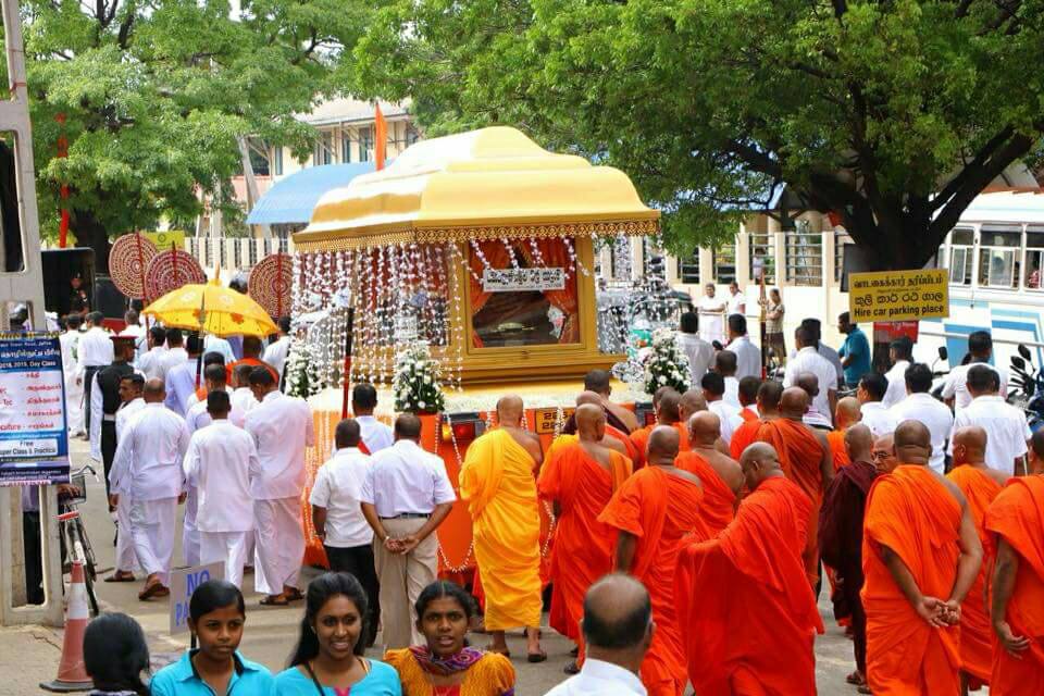 விசேட அதிரடிப்படை மற்றும் முப்படைகளது பலத்த பாதுகாப்புக்கு மத்தியில் ஆரியகுள நாக விகாரையில் இருந்து ”யாப்பணய” நகரின் ஊடாக மறைந்த பிக்குவின் உடல் முற்றவெளிக்கு எடுத்துச்செல்லப்பட்டுள்ளது.கொழும்பிலிருந்து விமானப்படை விமான மூலம் எடுத்துவரப்பட்ட சடலம் முதலில் நாகவிகாரைக்கு கொண்டு செல்லப்பட்டு பின்னர் யாழ்.நகரினூடாக முற்றவெளிக்கு கொண்டுசெல்லப்பட்டுள்ளது. இதற்காக நகரின் போக்குவரத்து ஏற்பாடுகள் மாற்றப்பட்டன. பெருமளவிலான தென்பகுதி மக்கள் பஸ்களில் கொண்டு வந்து இறக்கப்பட்டுள்ளனர். முற்றவெளி காவிக்கொடிகளால் அலங்கரிக்கப்பட்டு தகனத்திற்கு தயாராக உள்ளது.