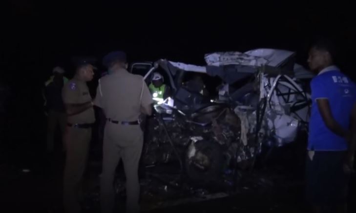 கிளிநொச்சி – மாங்குளம் பகுதியில் இன்று இரவு இடம்பெற்ற வாகன விபத்தில் சம்பவ இடத்திலேயே நால்வர் உயிரிழந்துள்ளனர் என பொலிஸார் தெரிவித்துள்ளனர்.