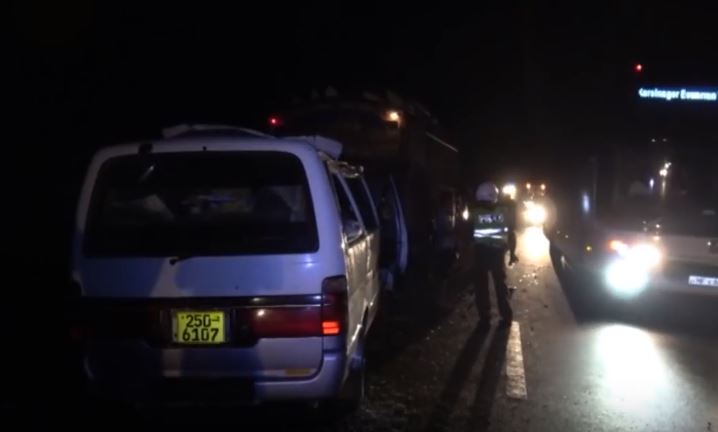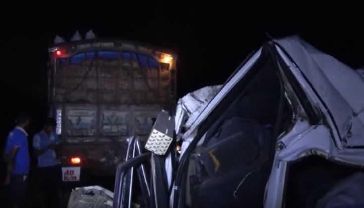 நிறுத்திவைக்கப்பட்டிருந்த பார ஊர்தியுடன் கொழும்பில் இருந்து யாழ்.நோக்கிச் சென்ற கயேஸ் வாகனம் மோதியதாலேயே இந்த விபத்து இடம்பெற்றுள்ளது.