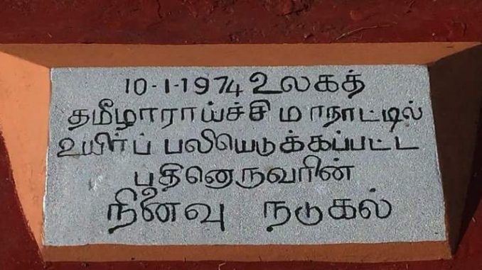 1974ஆம் ஆண்டு ஜனவரி 3ஆம் திகதி முதல் 10ஆம் திகதிவரை யாழ் வீரசிங்கம் மண்டபத்தில் நடைபெற்ற நான்காவது உலக ஆராய்ச்சி மாநாட்டில் ஏற்பட்ட கலவரத்தில் ஒன்பது பேர் படுகொலை செய்யப்பட்டனர்.