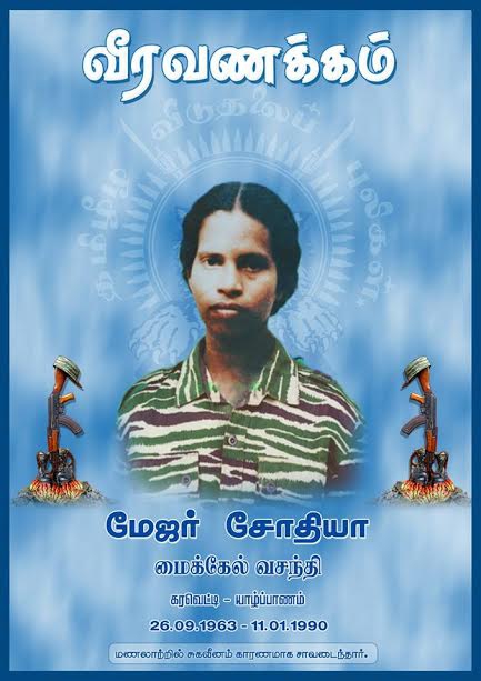தமிழீழ ‘இதயம்பூமி’ மணலாற்றுக் கானகத்தில் 11.01.1990 அன்று சூகையீனம் காரணமாக வீரச்சாவைத் தழுவிக்கொண்டதமிழீழ விடுதலைப்புலிகளின் முதற்பெண் தளபதி மேஜர் சோதியா அவர்களின் 30ஆம் ஆண்டு வீரவணக்க நாள்