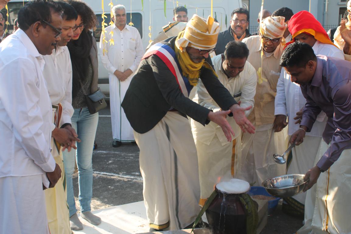 பொங்கலிடலின் பின்னர் இவிறி சூரசன் நகரபிதா திரு Bouyssou Philippe அவர்களும் வல்துமான் பிராந்திய துணை தலைவர் திருமதி Kirouani Lamya அவர்களும் மங்கல இசையுடன் மண்டபத்திற்குள் அழைத்துவரப் பட்டார்கள்.