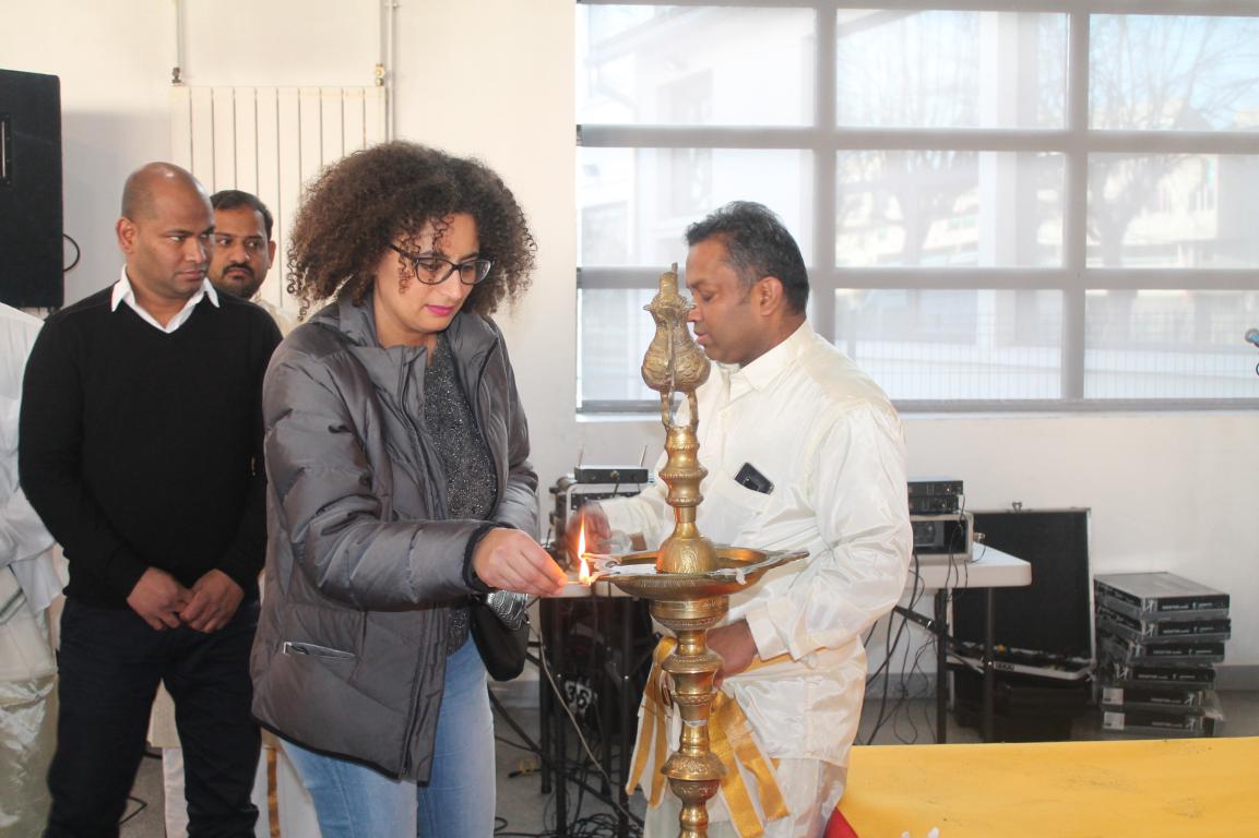 மங்களவிளக்கினை இவிறி சூரசன் நகரபிதா திரு Bouyssou Philippe அவர்களும் வல்துமான் பிராந்திய துணை தலைவர் திருமதி Kirouani Lamya மற்றும் தமிழர் பிரதிநிதிகள் ஏற்றிவைக்க மண்டப நிகழ்வுகள் ஆரம்பமாகின.