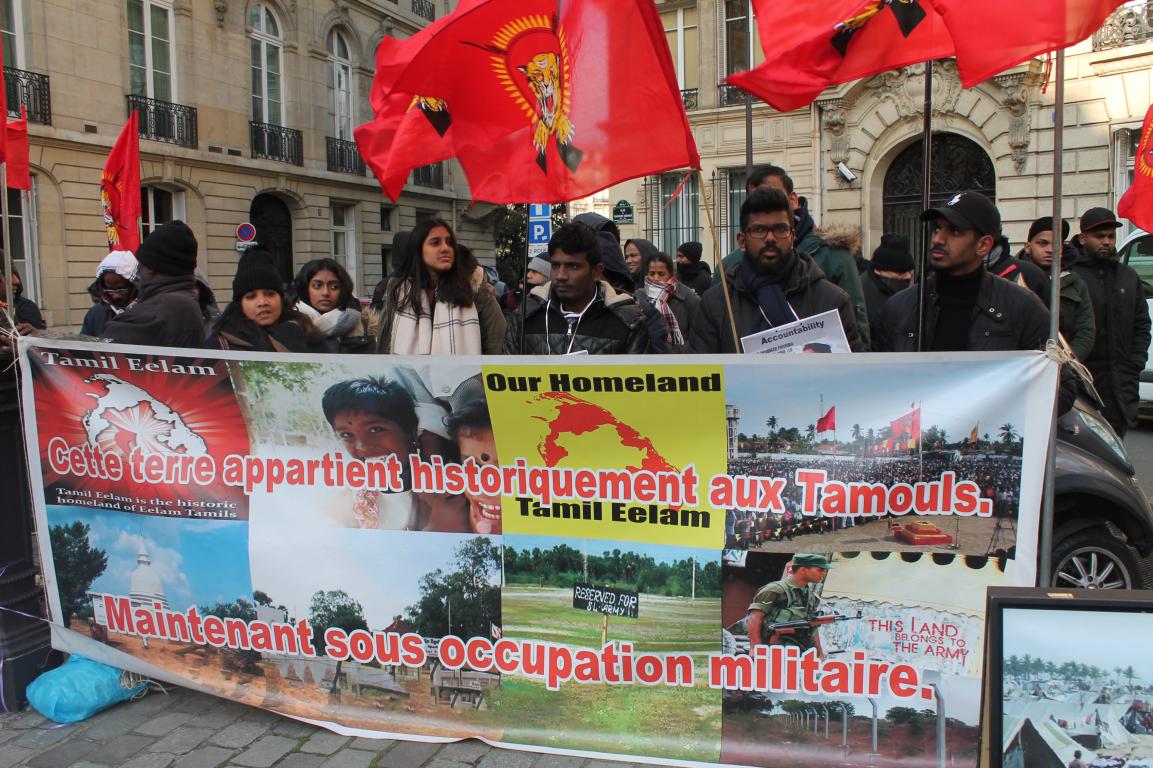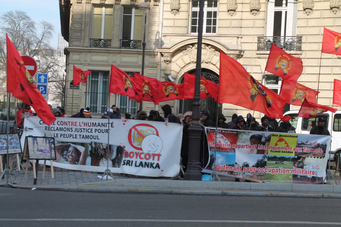 லண்டனில் சிறீலங்கா தூதரகத்திற்கு முன்னால் அகிம்சை வழியில் போராடிய தமிழ் மக்களை ‘கழுத்தை வெட்டுவேன்’ என்று சைகை காட்டி எச்சரித்து லண்டன் தமிழ் மக்கள் மீது இனவெறியை வெளிப்படுத்திய பிரிகேடியர் பிரியங்க பெர்னாண்டோ வன் செயலை கண்டித்து இன்று (28) 15.00 மணி தொடக்கம் 17.00 மணிவரை பிரான்சு சிறீலங்கா தூதரகத்திற்கு அருகமையில் கண்டன ஆர்பாட்டம் பெற்றது.
