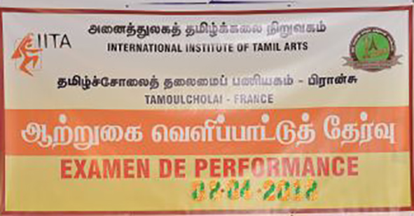 அனைத்துலகத் தமிழ்க்கலை நிறுவகம் தமிழ்ச்சோலைத் தலைமைப் பணியகம் – பிரான்சு இணைந்து நடாத்திய் ஆற்றுகை வெளிப்பாட்டுத் தேர்வு 2018 கடந்த 08.04.2018 ஞாயிற்றுக்கிழமை பிரான்சின் புறநகர் பகுதியான கார்லே கோணேஸ் என்னும் இடத்தில் காலை 10.30 மணிக்கு அகவணக்கத்துடன் தேர்வு நிகழ்வு ஆரம்பமாகியது.