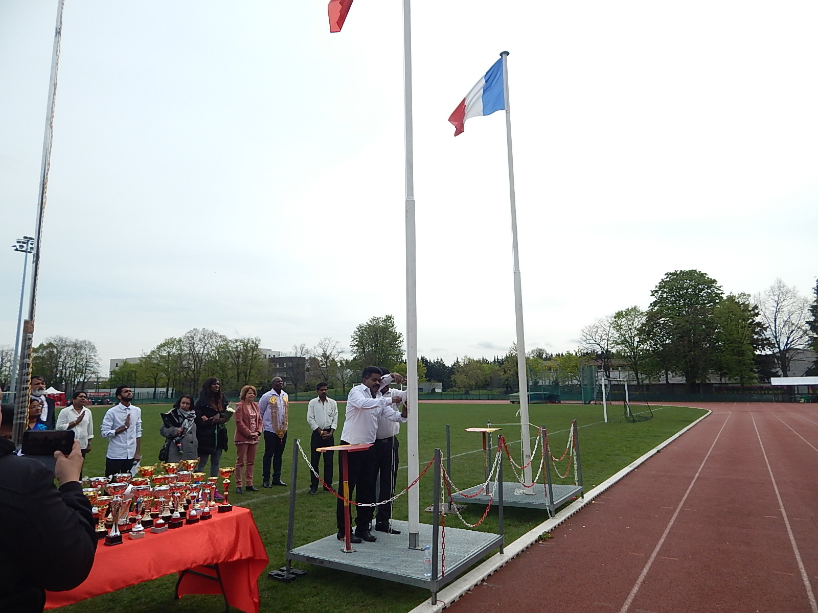 நிகழ்வில் பொதுச்சுடரினை பொண்டி தமிழ்ச்சோலை நிர்வாகி திரு.ஆறுமுகம் ஏற்றிவைக்க பிரெஞ்சு நாட்டுத் தேசியக்கொடியை பொண்டி நகரபிதா SYLVINE THOMASSIN அவர்கள் ஏற்றிவைத்தார்.