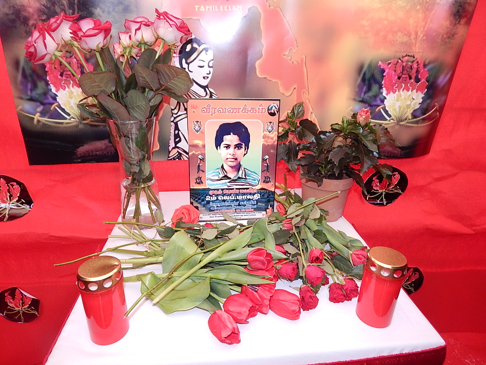 தமிழீழத் தேசியக் கொடியை பொண்டி தமிழ்ச்சங்கத் தலைவர் திரு.கலைச்செல்வன் அவர்கள் ஏற்றிவைக்க மாவீரர் பொது திரு உருவப்படத்துக்கான ஈகைச்சுடரினை 29.06.1998 திரியாய் திருகோணமலைப் பிரதேசத்தில் நடைபெற்ற மோதலில் வீரச்சாவடைந்த பாலேந்திரன் சிவப்பிரியன் அவர்களுடைய சகோதரி ஏற்றிவைத்து மலர்வணக்கம் செலுத்தினார்.