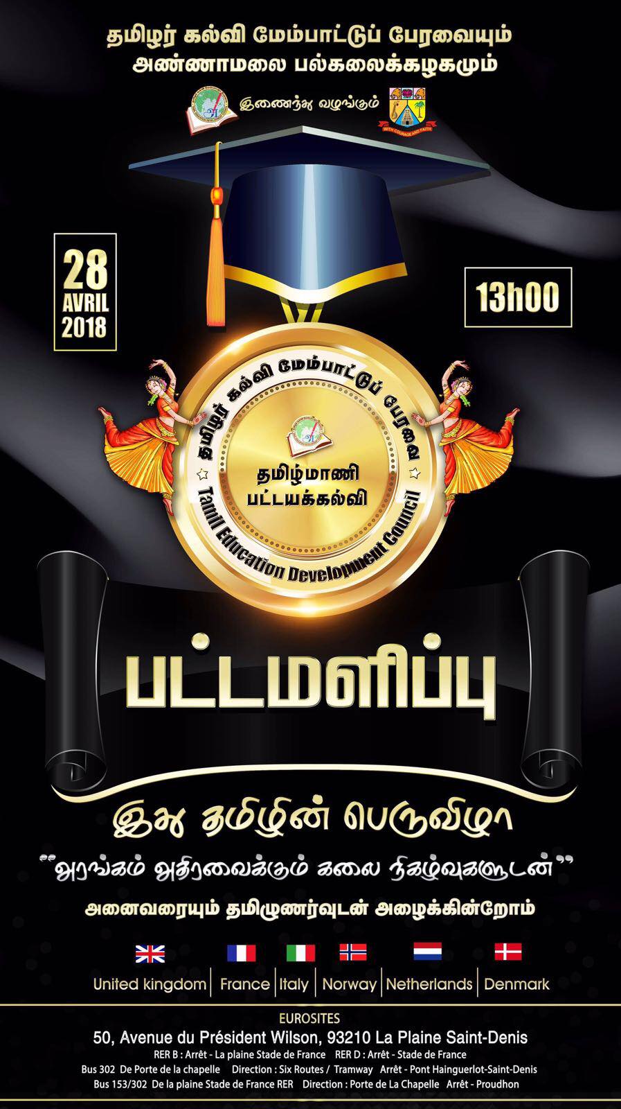 இரண்டாம் ஆண்டுத்தேர்வும் இந்த ஆண்டு ஜனவரி 07 ஆம்திகதி அனைவரும் எழுதிமுடித்துள்ளனர். அனேகமானோர் இத்தேர்வில் தேர்ச்சியடைந்துள்ளனர். இவர்களுக்காக வரும் ஏப்ரல் மாதம் 28 ஆம் திகதி சனிக்கிழமை தமிழ்மாணி என்ற பட்டமளிப்பு விழா பிரான்சில் முதன்முறையாக நடைபெற ஏற்பாடாகியுள்ளது. இதனை ஒரு பட்டமளிப்பு விழாவாக கல்விமேம்பாட்டுப்பேரவை பார்க்கவில்லை. இதனை தமிழுக்கான பெருவிழாவாகத்தான் பார்க்கின்றது. தமிழ் மக்கள் அத்தனைபேரையும் இணைக்கும் ஒரு விழாவாகப் பார்க்கின்றது. புகழ், பெருமை, பதவி, வறுமை என்பவற்றோடு வாழ்ந்தாலும் அனைவரையும் இணைப்பது எமது மொழிதான். அந்த மொழிக்கான விழாவாகத்தான் இதனைப் பார்க்கின்றோம்.