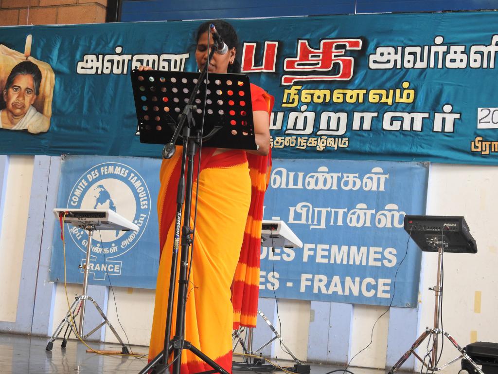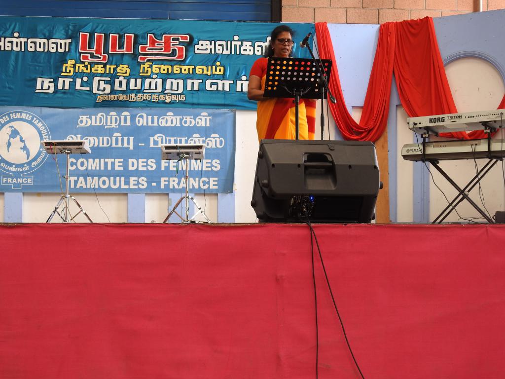 அரங்க நிகழ்வுகளாக தமிழ்ச் சோலை மாணவிகளின் எழுச்சி நடனங்களும், அங்கயர்க்கன்னி இசைக்குழுவின் எழுச்சிப்பாடல்களும், பிரான்சு தமிழ்ப் பெண்கள் அமைப்பைச் சேர்ந்தவர்களின் பேச்சு, மற்றும் கவிதை என்பன இடம் பெற்றன. சிறப்புரையினை பிரான்சு தமிழீழ மக்கள் பேரவைப் பொறுப்பாளர் திரு. திருச்சோதி அவர்கள் ஆற்றியிருந்தார்.