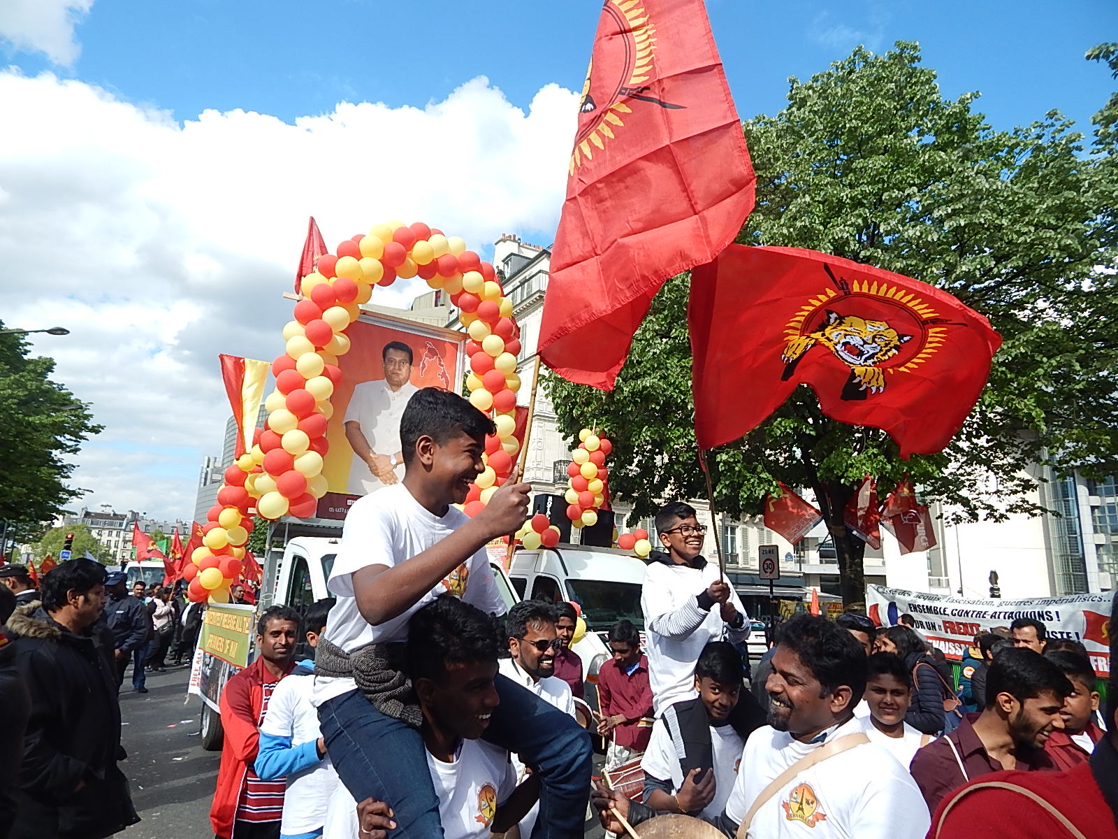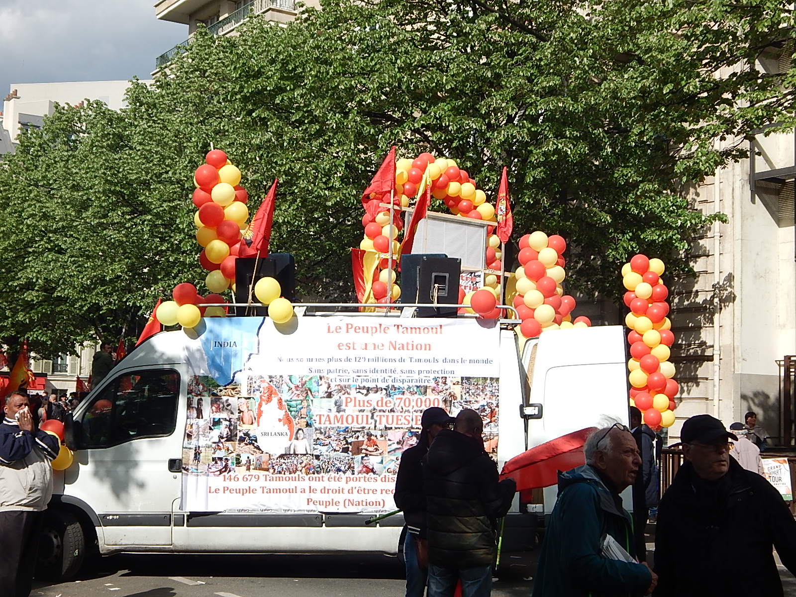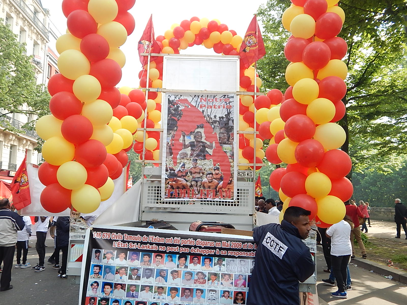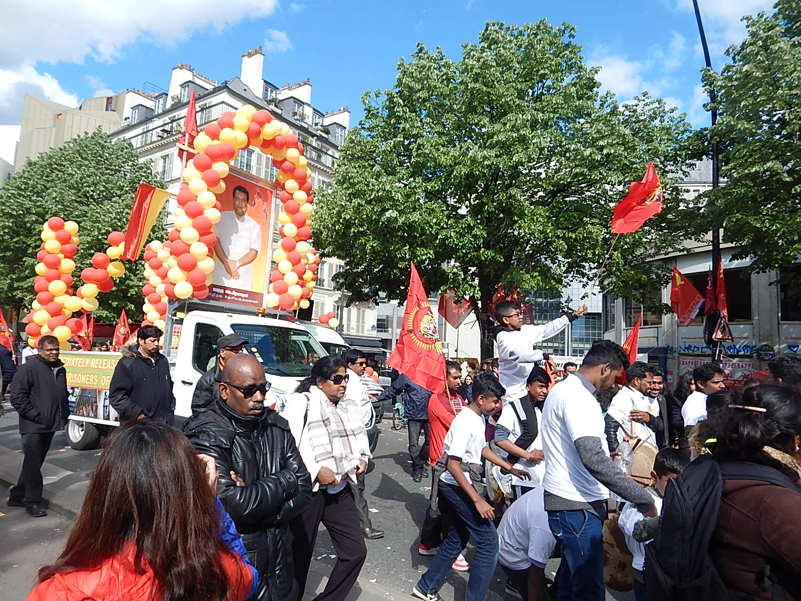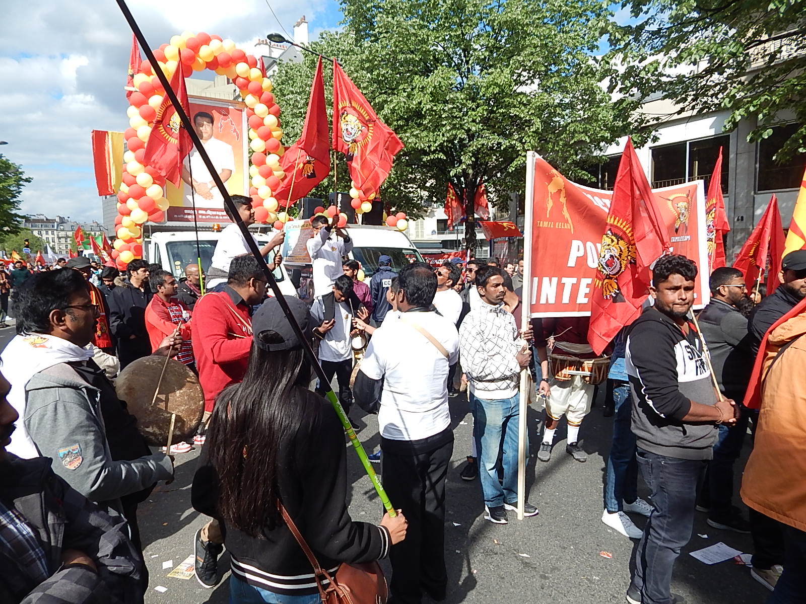 பாரிஸ் நகரின் Bastille நினைவுத் தூபிப் பகுதியில் இருந்து பிற்பகல் 14.00 மணியளவில் ஆரம்பித்த பேரணி பாரிஸின் பிரதான வீதிகளின் ஊடாக நகர்ந்து சென்றுகொண்டிருந்தது. தமிழீழத் தேசியத் தலைவர் மேதகு வேலுப்பிள்ளை பிரபாகரன் அவர்களின் திருஉருவப்படம் தாங்கி மஞ்சள் சிவப்பு பலூன்கள் கட்டப்பட்ட ஊர்தியின் மத்தியில் பதாதைகளைத் தாங்கியநிலையில் கோசம் எழுப்பியவாறு மக்களும் செயற்பாட்டாளர்களும் அணிவகுத்துச் சென்றனர்.