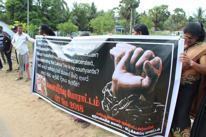 ஸ்ரீலங்கா சுதந்திர கட்சி மேதினக் கூட்டத்தை மட்டக்களப்பு மாவடிவேம்பில் நடாத்துவதற்கு எதிர்ப்புத் தெரிவித்து வலிந்து காணாமல் ஆக்கப்பட்டவர்களின் உறவுகள் திங்கட்கிழமை (07-05-2018) பகல் கவனயீர்ப்பு போராட்டத்தில் ஈடுபட்டனர் மே தினக் கூட்டம் நடைபெறும் இடத்திற்கு அண்டிய பகுதியில் ஒன்று கூடிய வலிந்து காணாமல் ஆக்கப்பட்டவர்களின் உறவுகள் தமது கோரிக்கைகள் அடங்கிய பதாதைகளை ஏந்திய வண்ணம் எதிர்ப்பு நடவடிக்கையில் ஈடுபட்டனர்