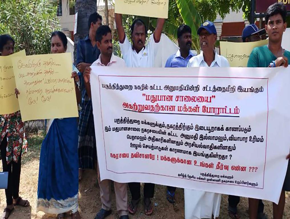 கட்டட அனுமதியின்றி, சட்டத்தைமீறி இயங்கிவரும் மதுபானசாலையை அகற்றக்கோரியே இப் போராட்டம் முன்னெடுக்கப்பட்டது.